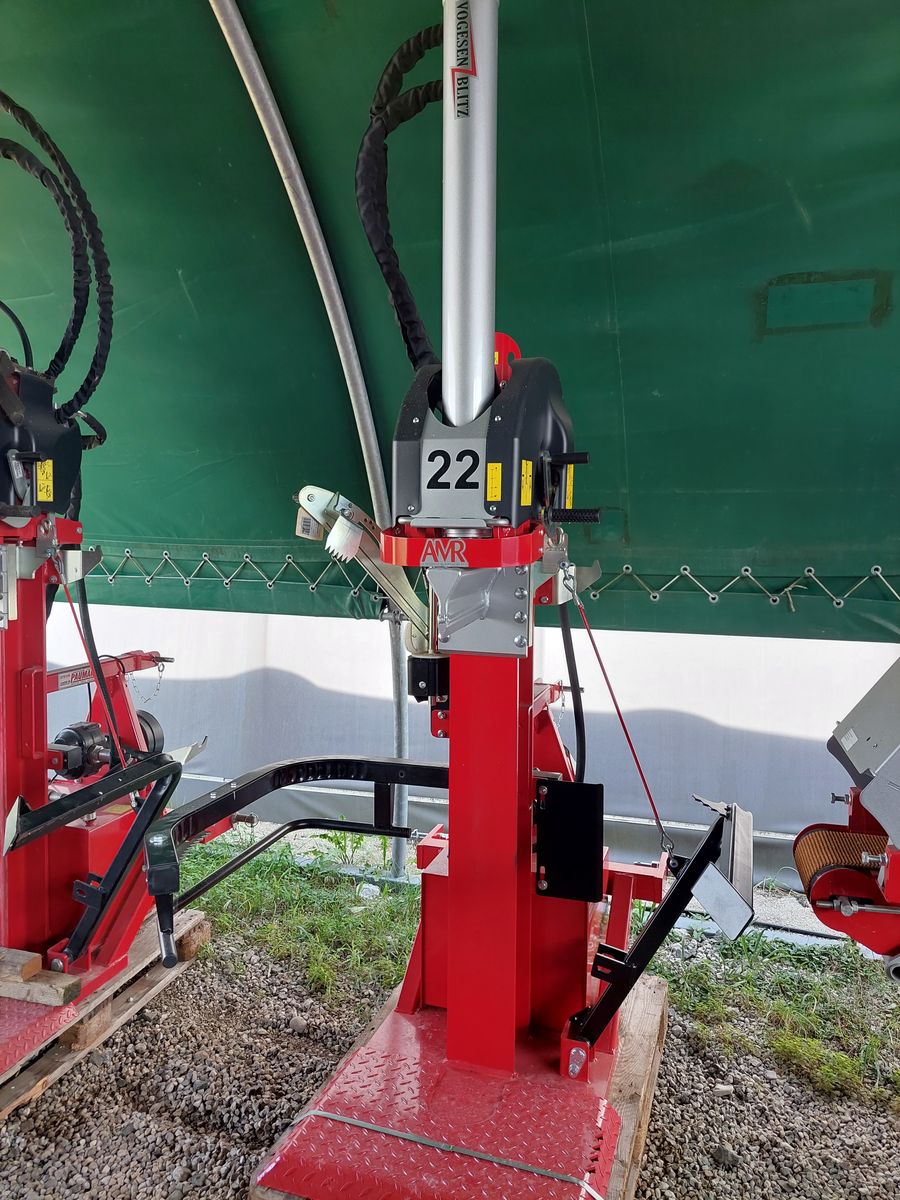 Lagermschine Holzspalter 22 t (stehend) – profiLine Serienmäßige Ausstattung: • Einfache und leichtgängige 2-Hand-Sicherheitsschaltung • Verstellbare Handgriffe • 2 Spaltgeschwindigkeiten • Kolbenschnellrücklauf • Zylinderhub 1.050 mm, werkzeuglos absenkbar • Mechanischer Stammheber • Vollstahl-Bodenplatte mit schrägen Kanten • Ergonomisch geformter Spaltkeil • Messingführung • Dreipunktanbau Kat. I und II • Doppelpumpe bei allen Modellen mit E-Motor • Gusspumpe, robust und leiste (bei Zapfwellenantrieb) • Halterung für Handsappie • Bedienungsanleitung VPF 22 Antrieb: Zapfwellenantrieb Spaltkraft: 22t Öffnungsweite: 1.150mm Stempelvorlauf (cm/s): Stufe 1: 11,4 Stufe 2: 23,3 Stempelrücklauf: 17,1cm/s Pumpenleistung: 69l/min Zylinderdurchmesser: 110 x 70 mm Füllmenge Hydrauliköl: 62l Spaltmesserlänge: 285mm Eigengewicht: 545kg ohne Zapfwelle
