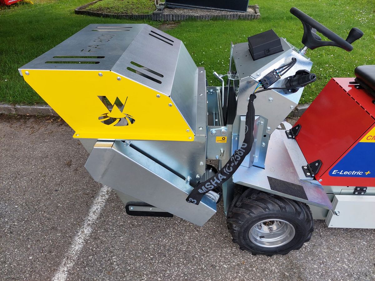 - Leistungsstarke, Wendige und Robuste Ganzjahresmaschinen - Antrieb elektrisch - Elektrische Geräteaushebung - Geräuscharm - Hochleistungsakkus 48 V (4 x 12 V), 80 Ah Antriebs- und Beleuchtungsbatterien - Einsatzdauer bis zu 60-120 Minuten - Elektronisches Ladegerät 48 V integriert mit Überladeschutz - Geschwindigkeit 8 km/h vorwärts, 5 km/h rückwärts - Ca. 300 kg Eigengewicht (Zusatzgewichte je nach Bedarf möglich) - Hinterradlenkung - AS Bereifung 16 x 6.50-8 - Abmessungen L: 1500 mm, B: 825 mm, H: 1170 mm - Anbaumöglichkeiten: + Radialbesen + Wildkrautbürste + Futteraufbereiter + Spaltenschieber + Spaltenwäscher + Futterschnecke + Schiebeschild + Schneeschild - Förderfähig - Innenmechanisierung - inkl. Set Kontergewichte seitlich (ca. 62 kg) - inkl. FA800 Futteraufbereiter - Verschiedene Anbaugeräte lagernd