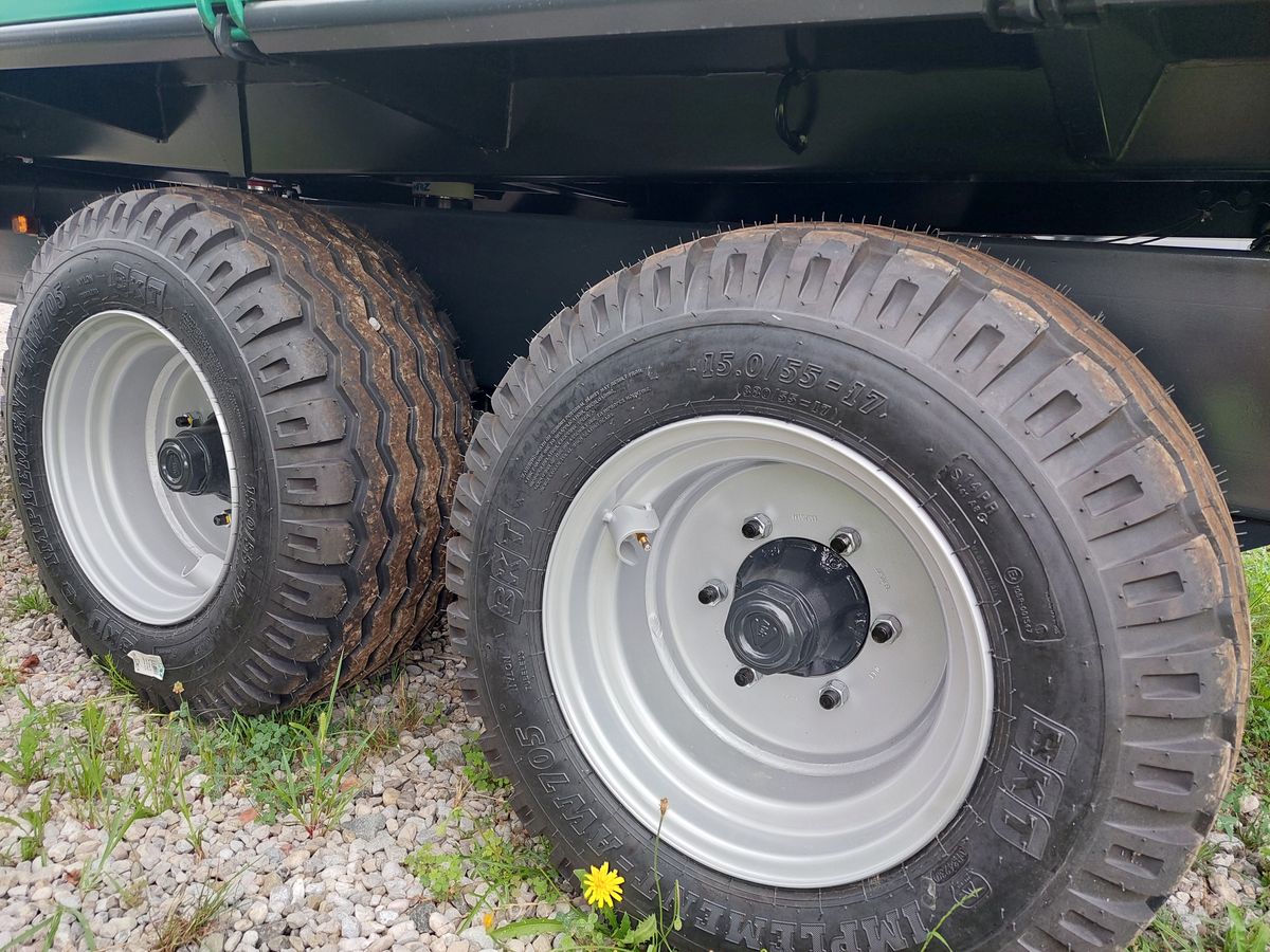 - zulässiges Gesamtgewicht 11.000kg - Brückenmaße innen 4.510mm x 2.060mm/2.160mm konisch - Bordwandhöhe 600mm + 600mm - Bereifung 15.0/55-17 - Obenanhängung mit Zugöse D40mm - Bordwandhebefedern links und rechts - Zentralverriegelung links, rechts und hinten - Kornschieber mit Hebel - Sattelstützwinde mit 2 Geschwindigkeiten - 25km/h Ausführung - Druckluftbremsanlage mit Handregler (Voll - Halb-Voll - Leer) - Sattelstützwinde mit 2 Geschwindigkeiten - inkl. Typenschein 25 km/h * Lagermaschine - PROMPT Verfügbar