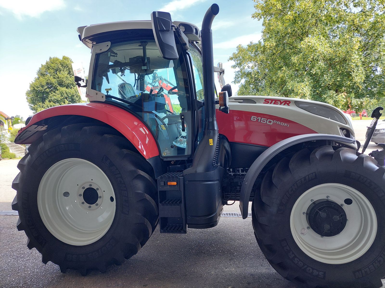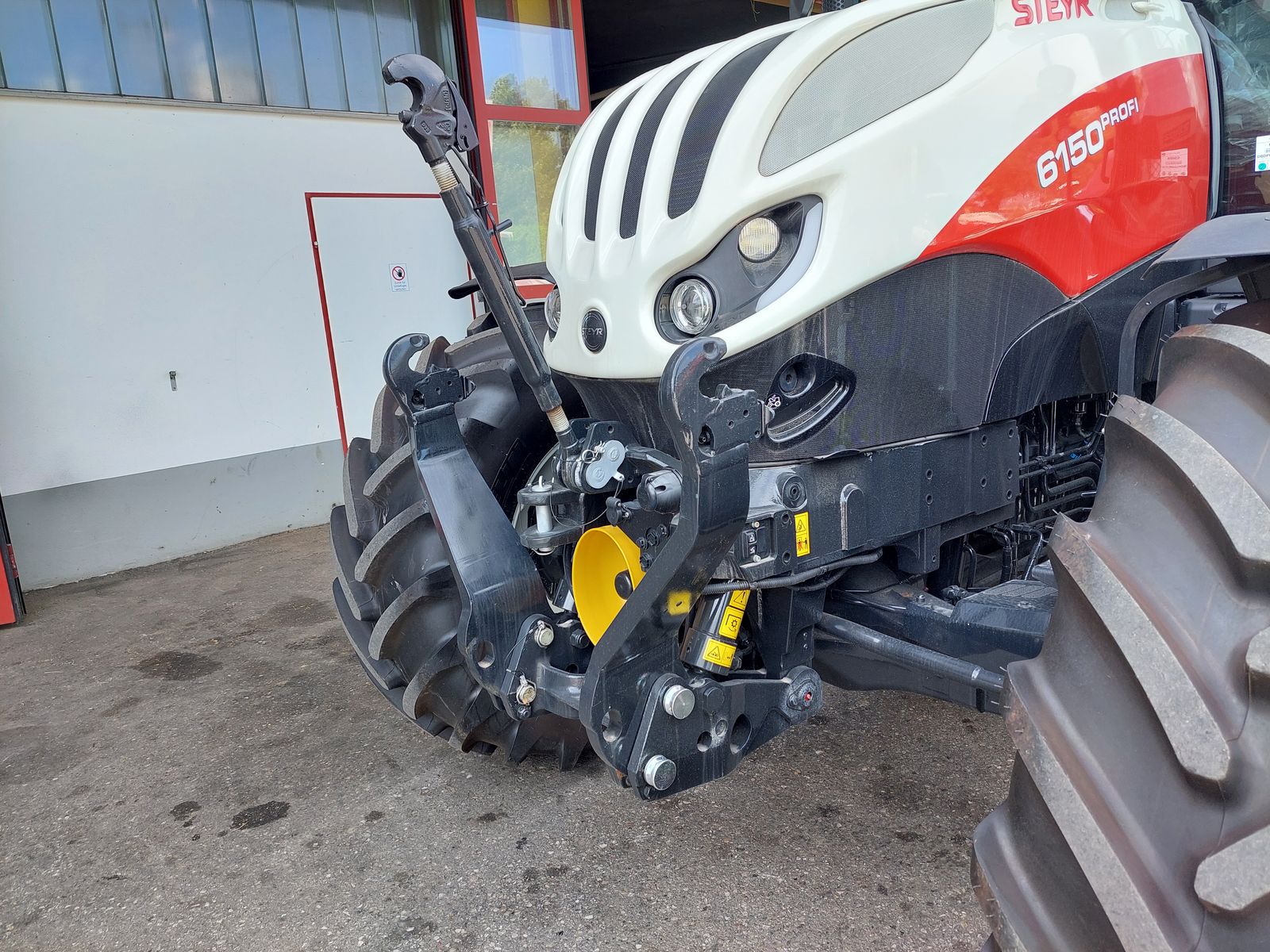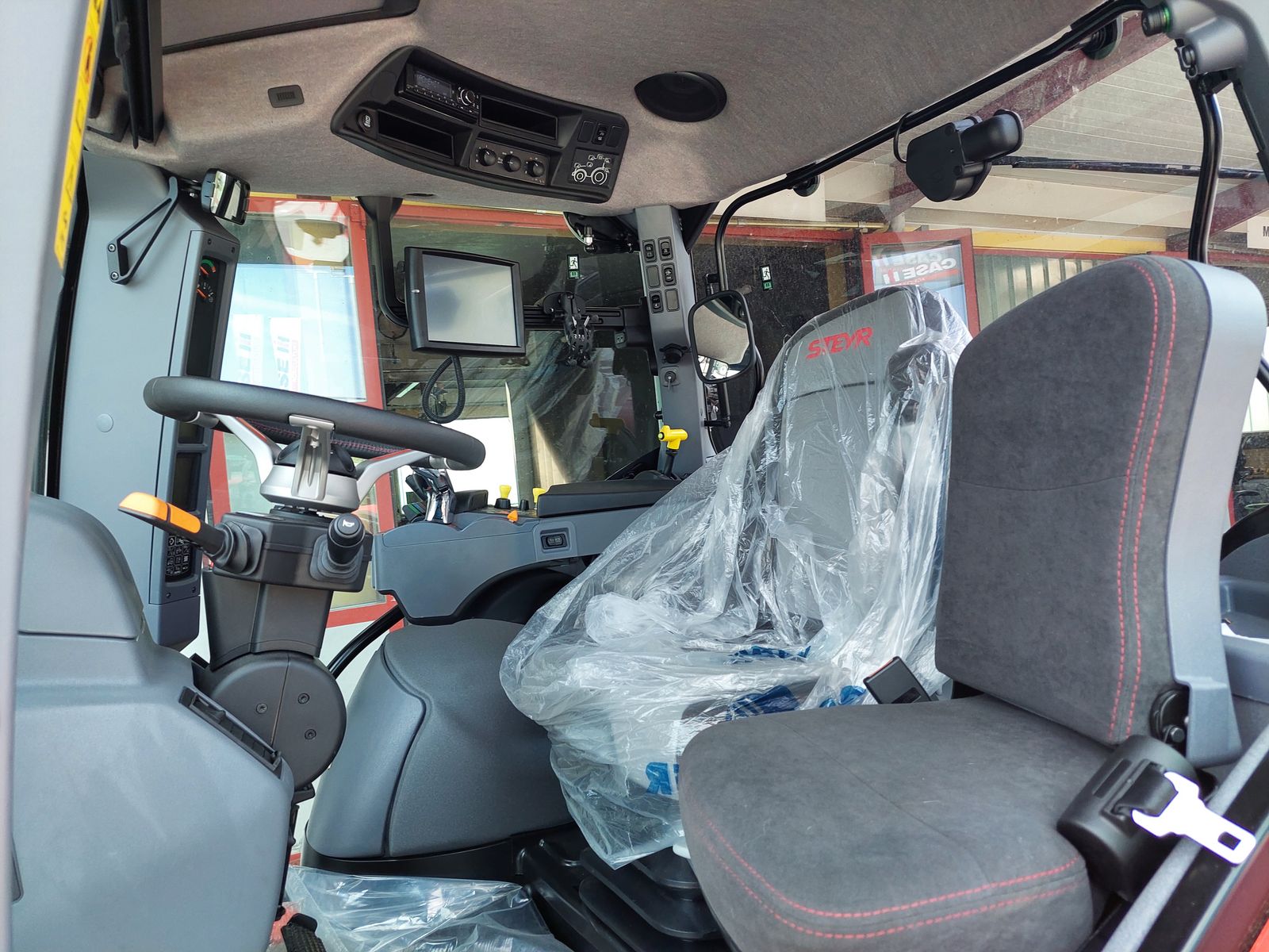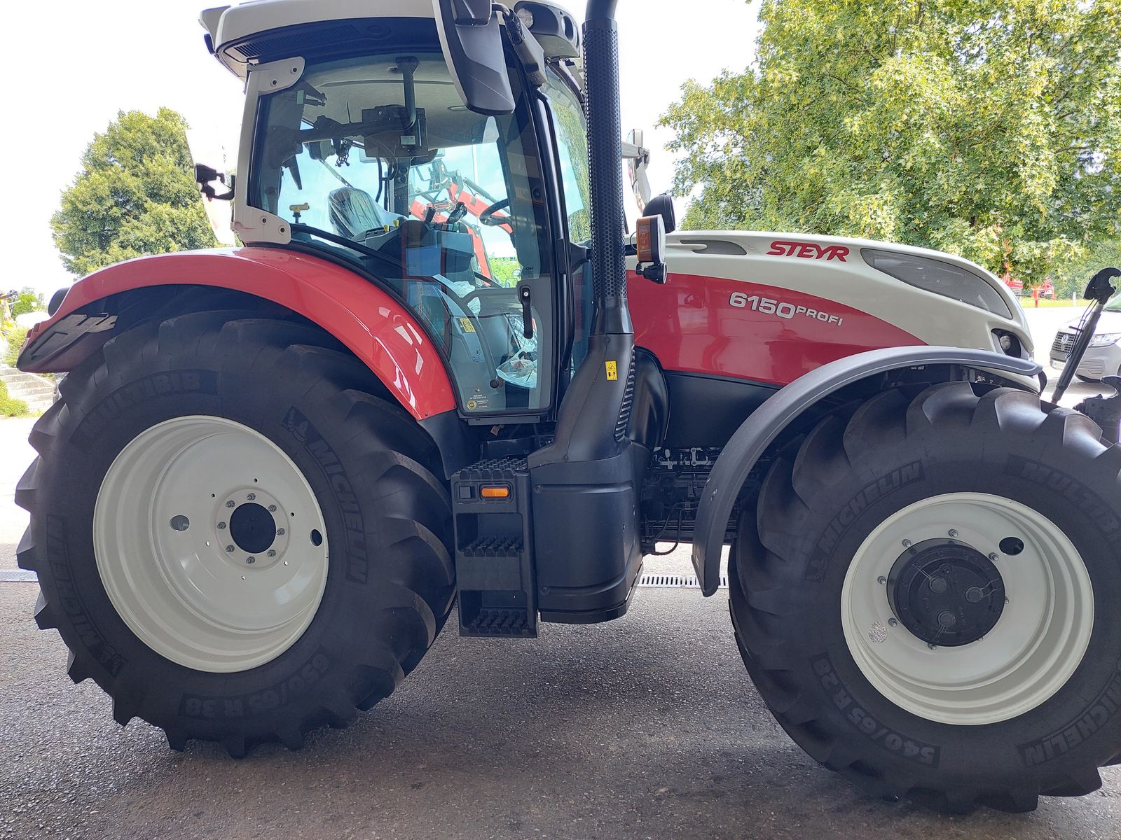 STEYR 6150 Profi - S-Control 8 - Neumaschine LAGERMASCHINE - sofort verfügbar * Vorderräder 540/65R28 Fixfelgen * Hinterräder 650/65R38 Fixfelgen * S-Control 8 Getriebe mit 50 km/h (24x24) * Gefederte und gebremste Vorderachse Kat. 3,5 * Ölgekühlte Longlife Bremsscheiben * Elektronische Parkbremse * Axialkolben Verstellpumpe mit max. 150 l/min Förderleistung * Fronthubwerk mit Frontzapfwelle * 4 elektrische Hecksteuergeräte * luftgefederte Grammer Dual Motion Fahrersitz mit Stoffbezug und schwenkbarer Rückenstütze * hydraulischer Oberlenker * Kabinenfederung * Vorglühanlage * hydraulische Anhängerbremse * Pneumatische Anhängerbremsanlage - Zweileiter * 16 LED Arbeitsscheinwerfer * Ersatzfahrscheinwerfer abblendbar * Klimaautomatik * 150 A Lichtmaschine * automatische Unterlenkerstabilisatoren * Deluxe Bluetooth Radio * elektrischer Joystick (3 Tasten) * 3-polige Dose und 7-polige Anhängerdose vorne und hinten * Aussentaster für Heckhubwerk, PTO und ein Steuergerät an beiden Heckkotflügeln * Monitor im Seitenfenster * erweitertes Vorgewendemanagement EASYTRONIC II * ISOBUS KL.2 mit Isobus-Verkabelung * elektronische Parkbremse * Motordrehzahl Management * Automatikgetriebefunktionen * Load Sensing (Power Beyond) * Neufahrzeug