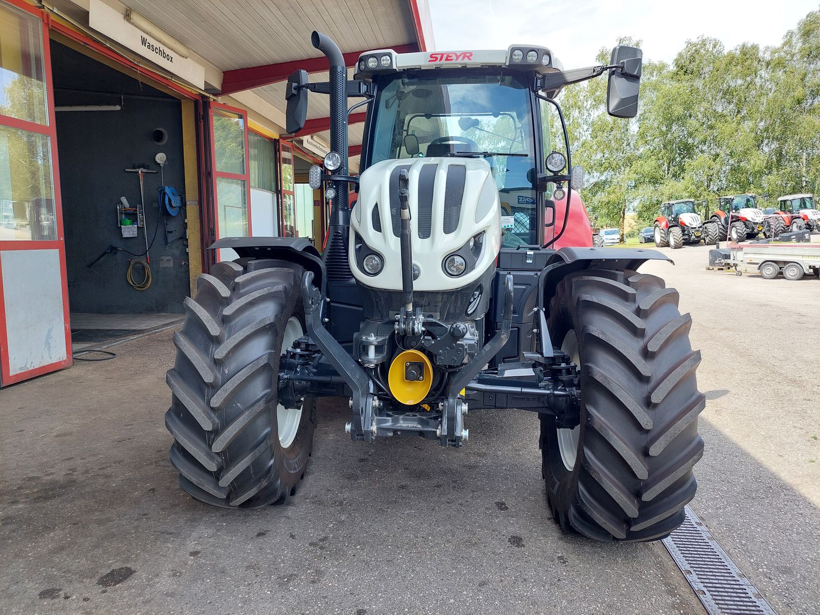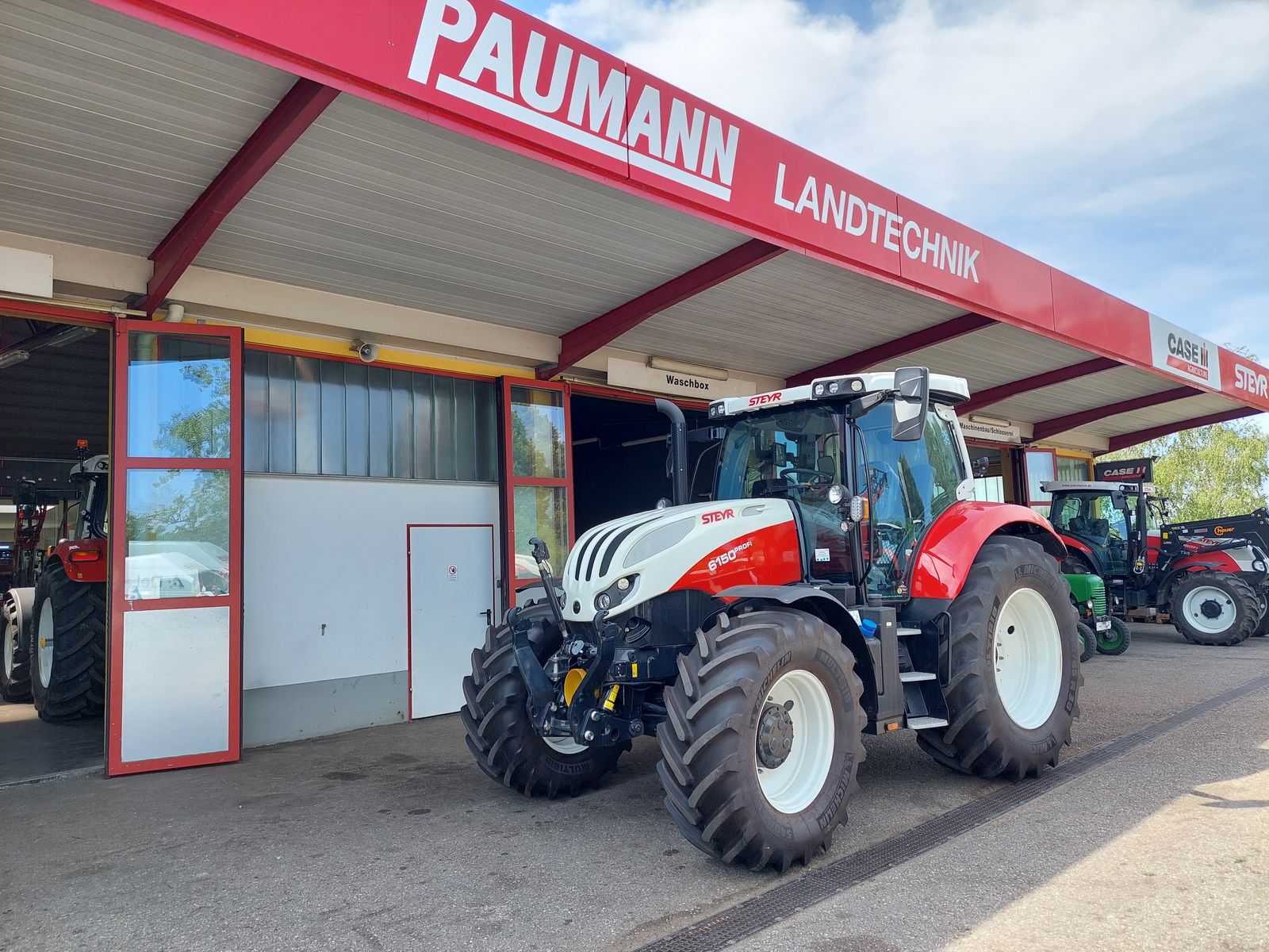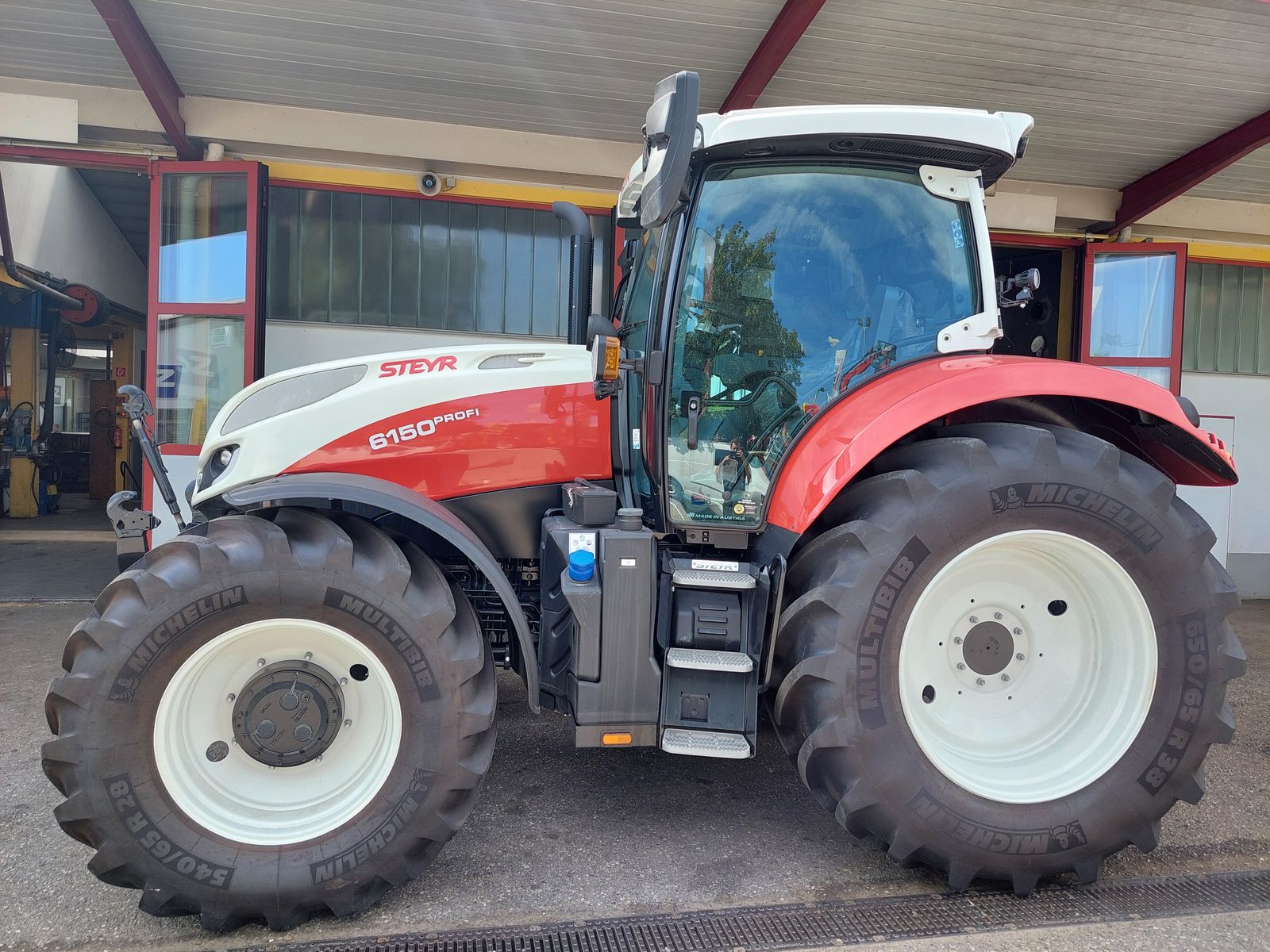 STEYR 6150 Profi - S-Control 8 - Neumaschine LAGERMASCHINE - sofort verfügbar * Vorderräder 540/65R28 Fixfelgen * Hinterräder 650/65R38 Fixfelgen * S-Control 8 Getriebe mit 50 km/h (24x24) * Gefederte und gebremste Vorderachse Kat. 3,5 * Ölgekühlte Longlife Bremsscheiben * Elektronische Parkbremse * Axialkolben Verstellpumpe mit max. 150 l/min Förderleistung * Fronthubwerk mit Frontzapfwelle * 4 elektrische Hecksteuergeräte * luftgefederte Grammer Dual Motion Fahrersitz mit Stoffbezug und schwenkbarer Rückenstütze * hydraulischer Oberlenker * Kabinenfederung * Vorglühanlage * hydraulische Anhängerbremse * Pneumatische Anhängerbremsanlage - Zweileiter * 16 LED Arbeitsscheinwerfer * Ersatzfahrscheinwerfer abblendbar * Klimaautomatik * 150 A Lichtmaschine * automatische Unterlenkerstabilisatoren * Deluxe Bluetooth Radio * elektrischer Joystick (3 Tasten) * 3-polige Dose und 7-polige Anhängerdose vorne und hinten * Aussentaster für Heckhubwerk, PTO und ein Steuergerät an beiden Heckkotflügeln * Monitor im Seitenfenster * erweitertes Vorgewendemanagement EASYTRONIC II * ISOBUS KL.2 mit Isobus-Verkabelung * elektronische Parkbremse * Motordrehzahl Management * Automatikgetriebefunktionen * Load Sensing (Power Beyond) * Neufahrzeug