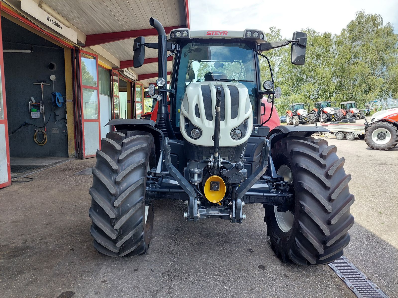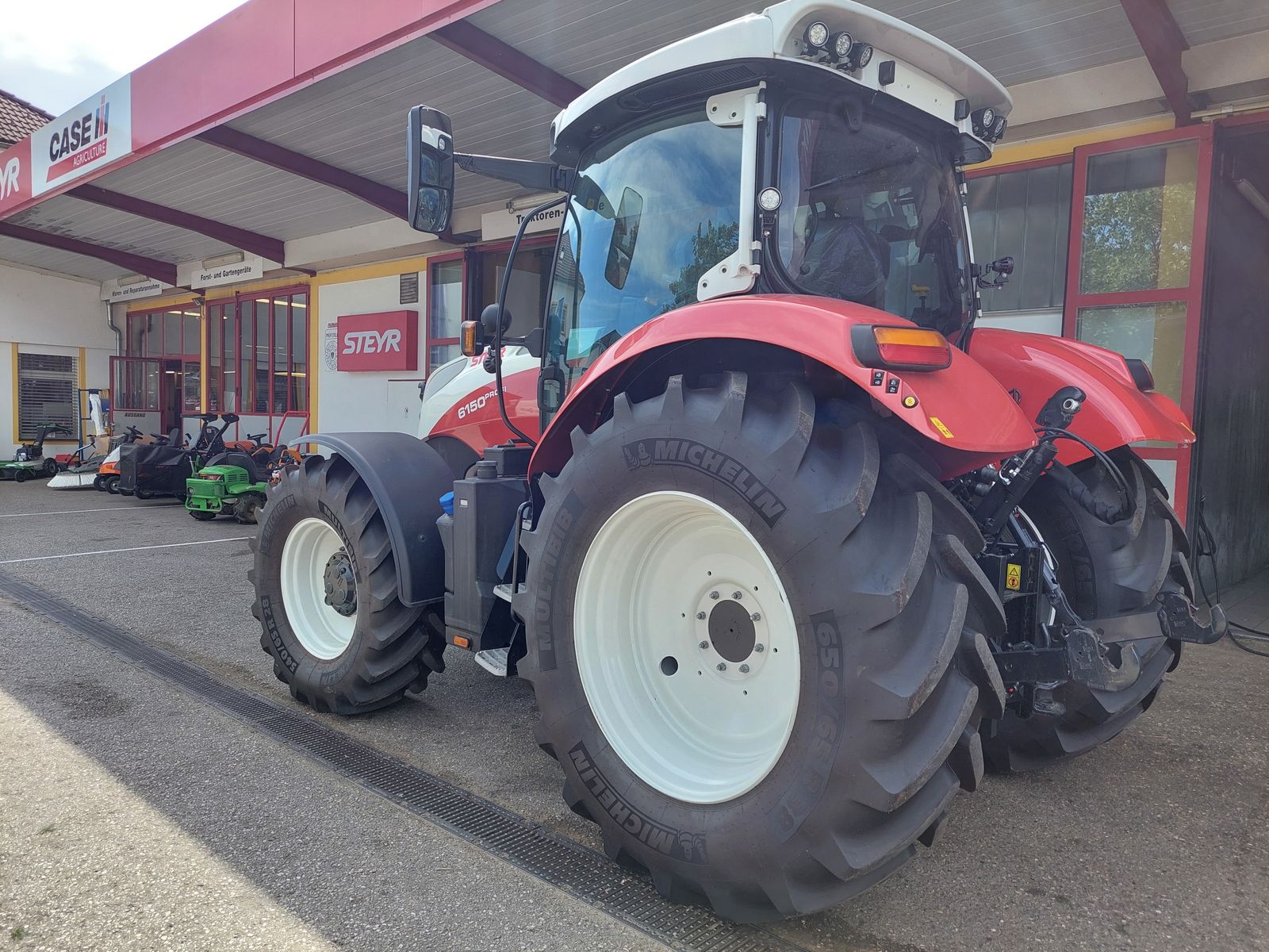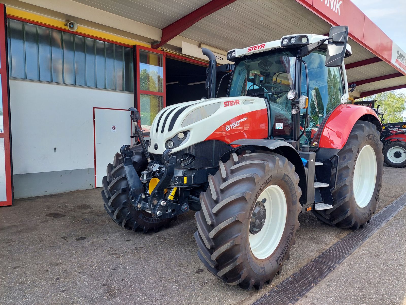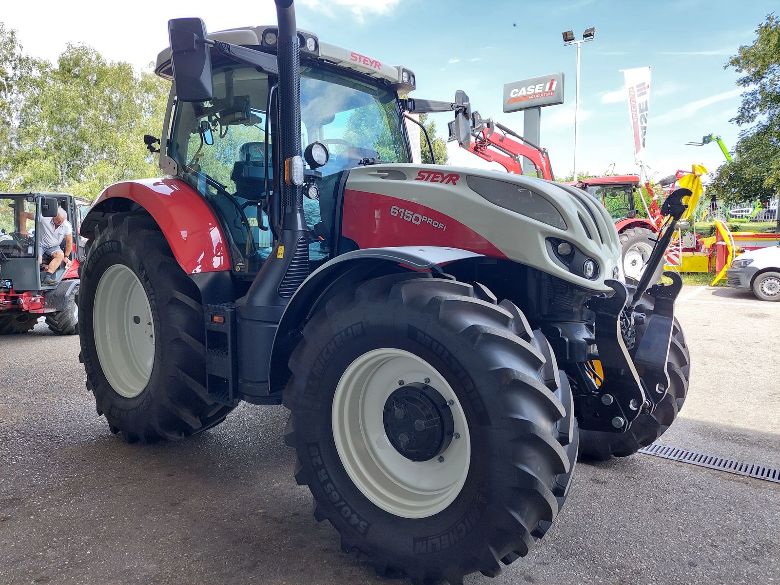 STEYR 6150 Profi - S-Control 8 - Neumaschine LAGERMASCHINE - sofort verfügbar * Vorderräder 540/65R28 Fixfelgen * Hinterräder 650/65R38 Fixfelgen * S-Control 8 Getriebe mit 50 km/h (24x24) * Gefederte und gebremste Vorderachse Kat. 3,5 * Ölgekühlte Longlife Bremsscheiben * Elektronische Parkbremse * Axialkolben Verstellpumpe mit max. 150 l/min Förderleistung * Fronthubwerk mit Frontzapfwelle * 4 elektrische Hecksteuergeräte * luftgefederte Grammer Dual Motion Fahrersitz mit Stoffbezug und schwenkbarer Rückenstütze * hydraulischer Oberlenker * Kabinenfederung * Vorglühanlage * hydraulische Anhängerbremse * Pneumatische Anhängerbremsanlage - Zweileiter * 16 LED Arbeitsscheinwerfer * Ersatzfahrscheinwerfer abblendbar * Klimaautomatik * 150 A Lichtmaschine * automatische Unterlenkerstabilisatoren * Deluxe Bluetooth Radio * elektrischer Joystick (3 Tasten) * 3-polige Dose und 7-polige Anhängerdose vorne und hinten * Aussentaster für Heckhubwerk, PTO und ein Steuergerät an beiden Heckkotflügeln * Monitor im Seitenfenster * erweitertes Vorgewendemanagement EASYTRONIC II * ISOBUS KL.2 mit Isobus-Verkabelung * elektronische Parkbremse * Motordrehzahl Management * Automatikgetriebefunktionen * Load Sensing (Power Beyond) * Neufahrzeug