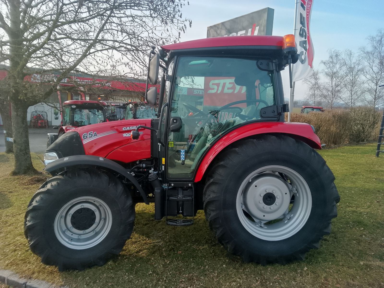 Ausstattung: - ManualDrive 12x12 Getriebe, 40 km/h - 20x20 Kriechganggetriebe - Zapfwelle 540/540E - Vorderachsbock mit Vorbereitung für Frontzapfwelle (Batterieposition erhöht) - Allradachse mit Selbstsperrdifferenzial, 1 Lenkzylinder für 40 km/h - Mechanische Differnzialsperre & elektro-hydraulische Allradschaltung für Syncro Shuttle 3x mechan. Hecksteuergeräte (1. einfach/doppelwirkend, 2. doppelwirkend mit Endabschaltung & - Schwimmstellung, 3. doppelwirkend mit Endabschaltung, Schwimmstellung & Mengenregulierung) - Schnellkupplungen (DELUXE) - Außenbedienung für Heckhubwerk - Mechanische Hubwerksregelung (MHR) Lift-O-Matic, mit externem Hubzylinder - Unterlenkerschnellfanghaken - Anhängebock mit höhenverstellbarem, drehbaren Zugmaul mit 32mm Zugbolzen (manuell) - Ackerschiene - Fahrersitz (Stoff), luftgefedert, mit Armlehne & Gurt - Ausbildungssitz mit Gurt (Beifahrersitz ohne Genehmigung für öffentlichen Straßenverkehr) - Front- & Heckscheibenwischer - Bluetooth-Radio - Kabine mit fixer Frontscheibe & Freisichtdachfenster - Kabinenheizung & Lüftung mit Klimaanlage - 2x Arbeitsscheinwerfer am Dach vorne & 2x Arbeitsscheinwerfer am Dach hinten - Rundumleuchte - 2x Teleskopaußenspiegel mit Weitwinkelsegment - Vorderräder: 14.9LR20 Verstellfelgen, KLEBER - Hinterräder: 420/85R30 (16.9R30) Verstellfelgen, KLEBER - Vorderradkotflügel 400 mm mitschwenkend