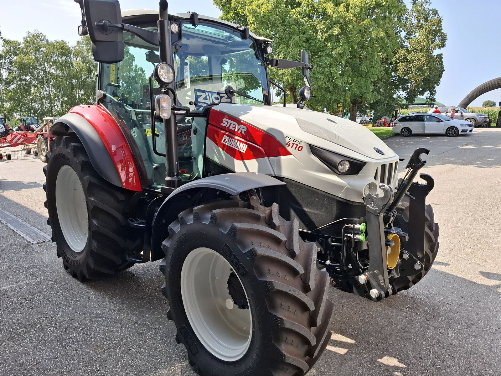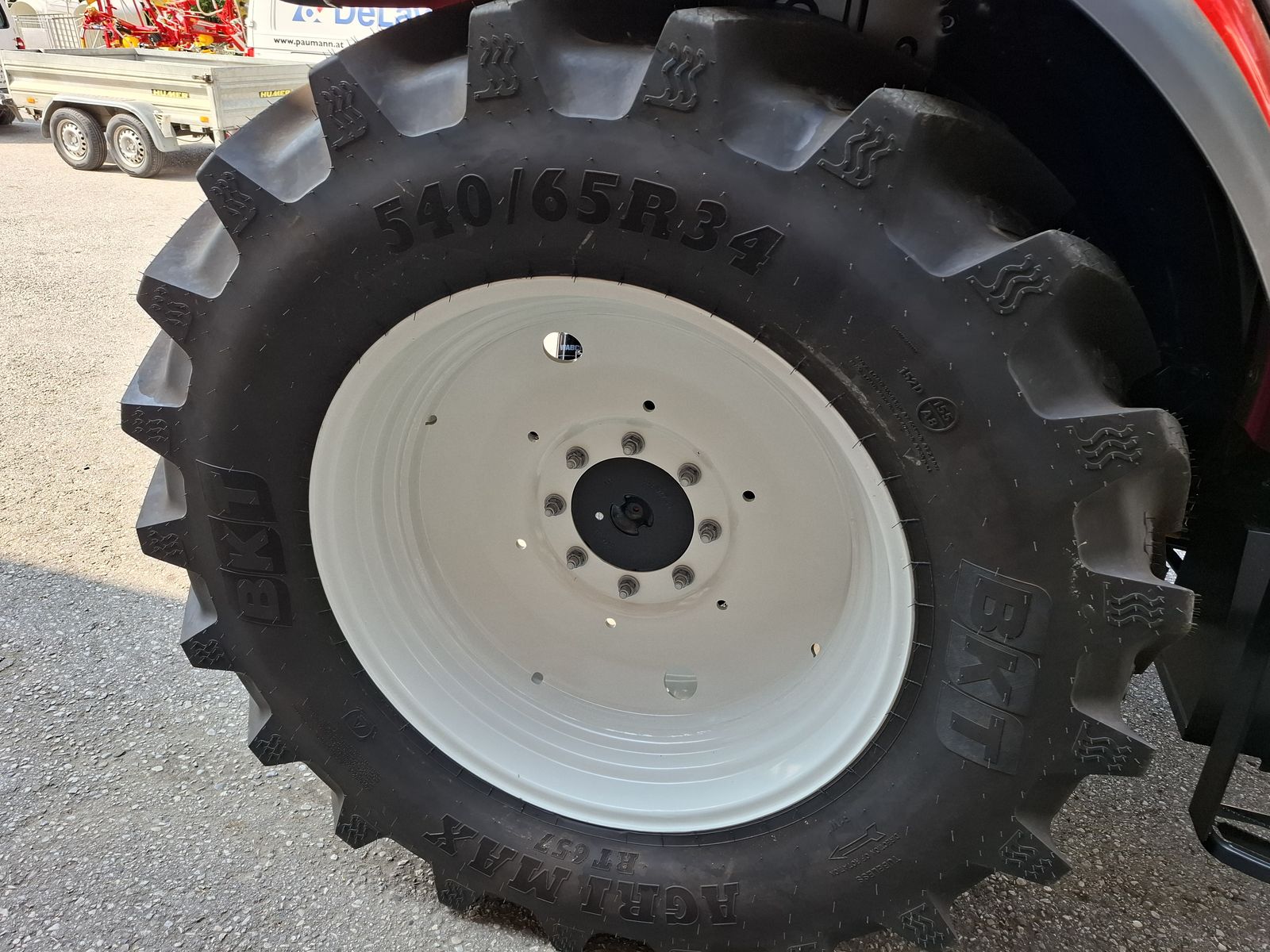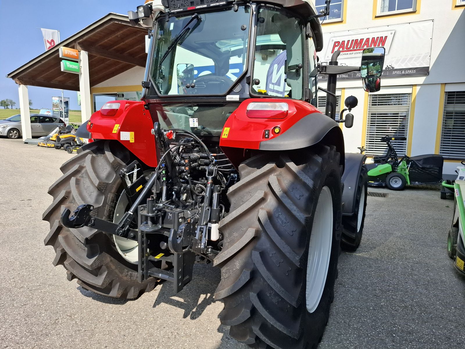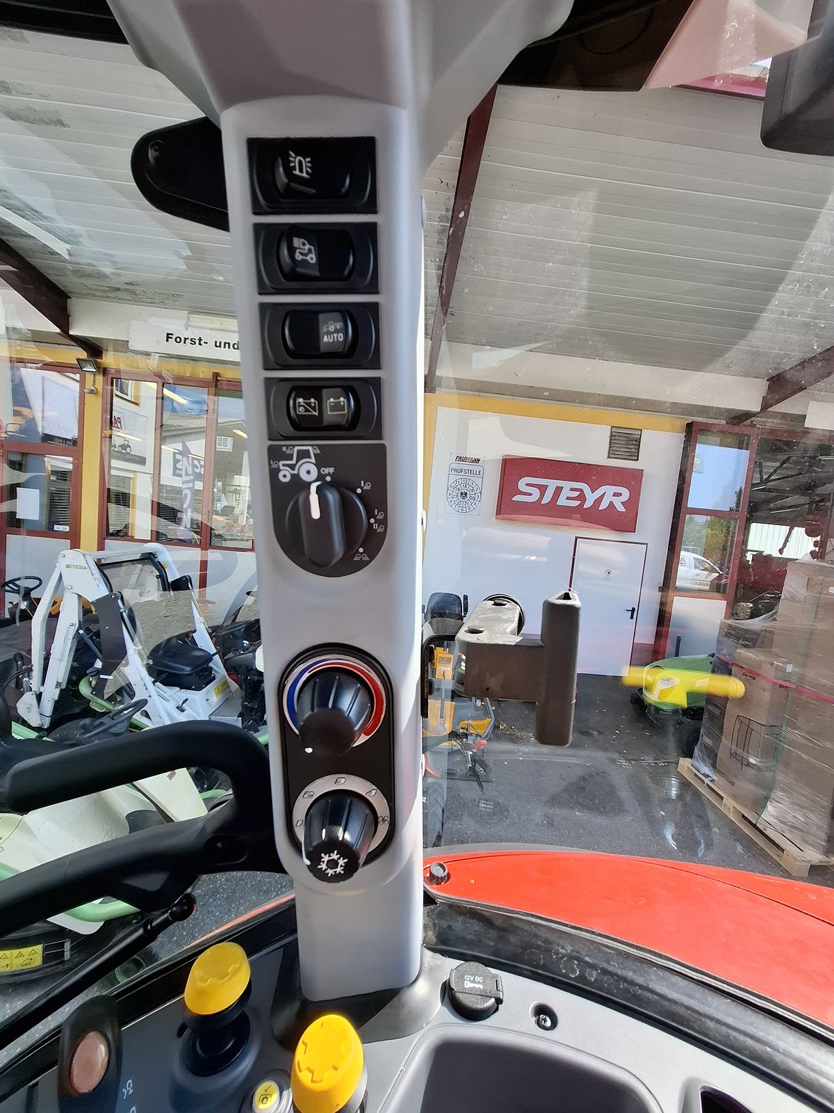 * Vorführtraktor - JETZT DEINE VORFÜHRUNG planen mit Fa. PAUMANN TOP Ausstattung * mechanisches Fronthubwerk und Frontzapfwelle * 1x DW am Fronthubwerk * 2 Zwischenachssteuergeräte mit mech. Kreuzschalthebel Advanced * Elektronische Hubwerksregelung 2 externe Zusatzhubzylinder max. Hubkraft: 4.700 kg * S-Control 2 24x24 Getriebe mit elektrohydraulischen Powershuttle * Vorbereitung für Kriechgang * 2-fach Lastschaltung * 40 km/h bei reduzierter Drehzahl * elektrischer Fahrkupplungsbetätigung * hydr. Zapfwellenkupplung S-Stop II - 3-fach einstellbar * Zapfwellengeschwindigkeiten 540/540E/1000 inkl. AUTO-Funktion inkl. einstellbares Anlaufverhalten * Luftfedersitz (Grammer) Stoffbezug, Armlehnen, Gurt und 15° drehbar * Scharmüller Anhängerkupplung automatisch 32 mm Bolzen höhenverstellbar mit Fernbedienung aus der Kabine * Komfortkabine mit mechanischer Kabinenfederung * Klimaanlage * Armaturenbrett mit digitaler Anzeige * Aufstellbare Frontscheibe und aufstellbare Seitenscheiben * Freisichtdachfenster inkl. Sonnenrollo * Beifahrersitz mit Gurt * Innenspiegel * Wisch/Waschanlage Vorne und Hinten * Zigarettenanzünder und Aschenbecher * Radio * pneumatische Anhängerbremse (2-Kreis) * Kraftstofftank mit Tankschutz 130 Liter Diesel 10 Liter AdBlue * Allradvorderachse 1.0 HD gebremst * mit hydraulischer Differenzialsperre * Grundrahmen zur Montage von Frontladerkonsolen * 82 l/min Hydraulikpumpe für Arbeitshydraulik inkl. 36 l/min Lenkungspumpe * FPT F5C 3,6 l Vierzylindermotor, EU Stufe 5 mit zwei Motordrehzahlspeicher * 8x Arbeitsscheinwerfer davon 2x in der Motorhaube davon 2x am Dach vorne davon 4x am Dach hinten zusätzlich obenliegende Fahrscheinwerfer * 2 Rundumleuchten links und rechts * Handbremse und mechanische Getriebeparksperre * Vorderräder 440/65R24 Fixfelgen * Hinterräder 540/65R34 Fixfelgen Bei Interesse und für weitere Fragen wenden Sie sich bitte an unser Paumann-Landtechnik Verkaufsteam - wir beraten Sie gerne.