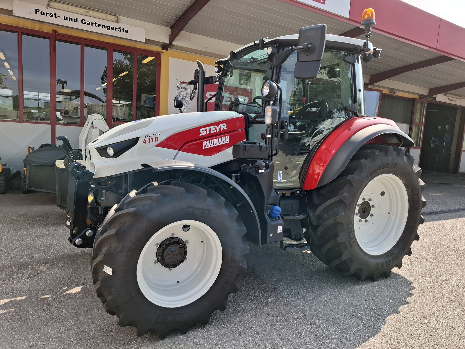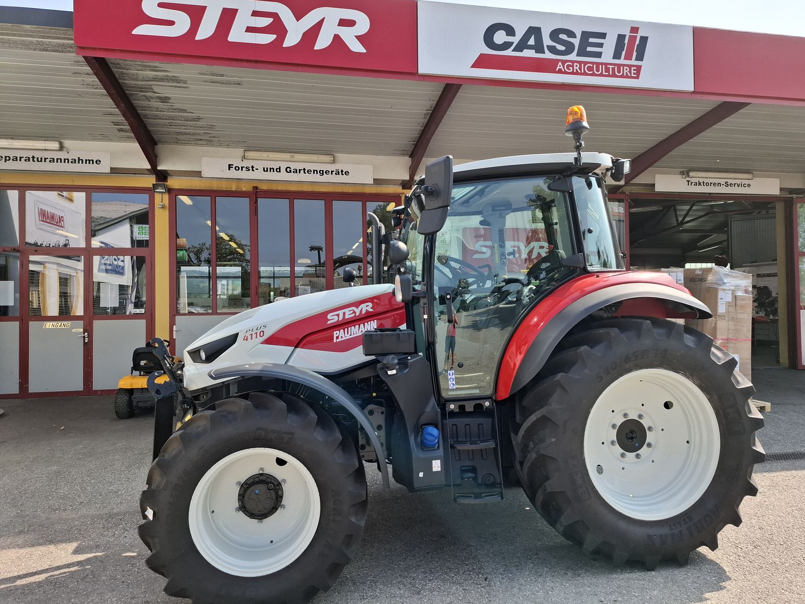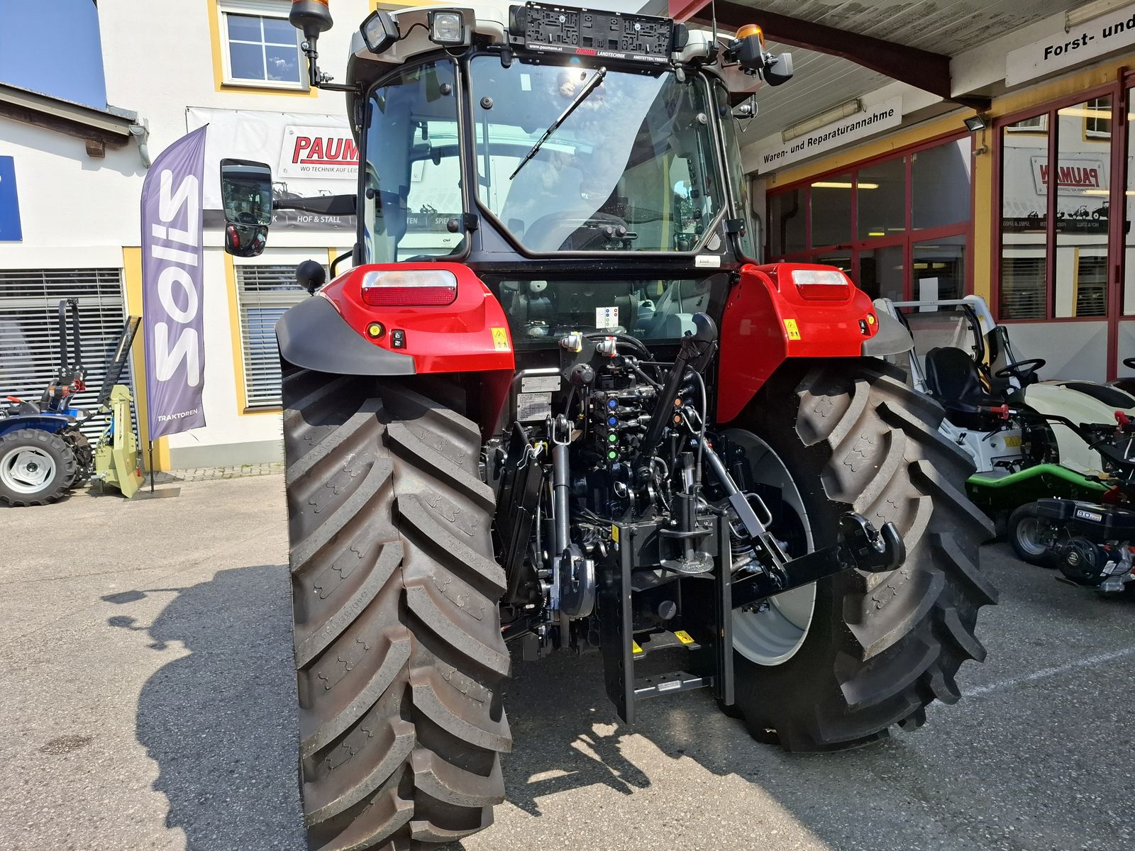 * Vorführtraktor - JETZT DEINE VORFÜHRUNG planen mit Fa. PAUMANN TOP Ausstattung * mechanisches Fronthubwerk und Frontzapfwelle * 1x DW am Fronthubwerk * 2 Zwischenachssteuergeräte mit mech. Kreuzschalthebel Advanced * Elektronische Hubwerksregelung 2 externe Zusatzhubzylinder max. Hubkraft: 4.700 kg * S-Control 2 24x24 Getriebe mit elektrohydraulischen Powershuttle * Vorbereitung für Kriechgang * 2-fach Lastschaltung * 40 km/h bei reduzierter Drehzahl * elektrischer Fahrkupplungsbetätigung * hydr. Zapfwellenkupplung S-Stop II - 3-fach einstellbar * Zapfwellengeschwindigkeiten 540/540E/1000 inkl. AUTO-Funktion inkl. einstellbares Anlaufverhalten * Luftfedersitz (Grammer) Stoffbezug, Armlehnen, Gurt und 15° drehbar * Scharmüller Anhängerkupplung automatisch 32 mm Bolzen höhenverstellbar mit Fernbedienung aus der Kabine * Komfortkabine mit mechanischer Kabinenfederung * Klimaanlage * Armaturenbrett mit digitaler Anzeige * Aufstellbare Frontscheibe und aufstellbare Seitenscheiben * Freisichtdachfenster inkl. Sonnenrollo * Beifahrersitz mit Gurt * Innenspiegel * Wisch/Waschanlage Vorne und Hinten * Zigarettenanzünder und Aschenbecher * Radio * pneumatische Anhängerbremse (2-Kreis) * Kraftstofftank mit Tankschutz 130 Liter Diesel 10 Liter AdBlue * Allradvorderachse 1.0 HD gebremst * mit hydraulischer Differenzialsperre * Grundrahmen zur Montage von Frontladerkonsolen * 82 l/min Hydraulikpumpe für Arbeitshydraulik inkl. 36 l/min Lenkungspumpe * FPT F5C 3,6 l Vierzylindermotor, EU Stufe 5 mit zwei Motordrehzahlspeicher * 8x Arbeitsscheinwerfer davon 2x in der Motorhaube davon 2x am Dach vorne davon 4x am Dach hinten zusätzlich obenliegende Fahrscheinwerfer * 2 Rundumleuchten links und rechts * Handbremse und mechanische Getriebeparksperre * Vorderräder 440/65R24 Fixfelgen * Hinterräder 540/65R34 Fixfelgen Bei Interesse und für weitere Fragen wenden Sie sich bitte an unser Paumann-Landtechnik Verkaufsteam - wir beraten Sie gerne.
