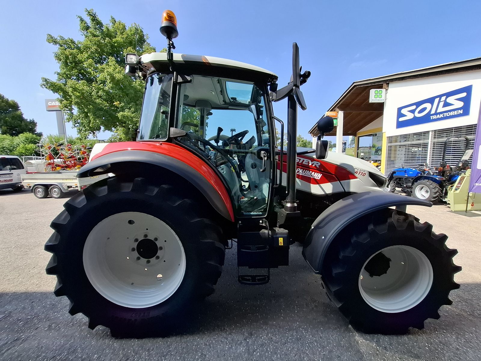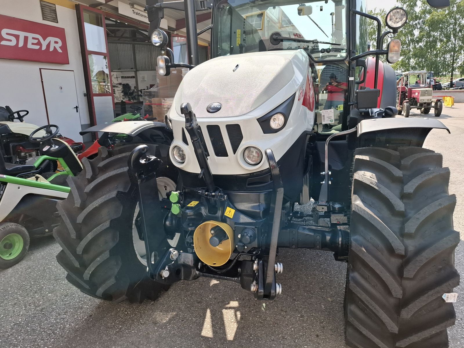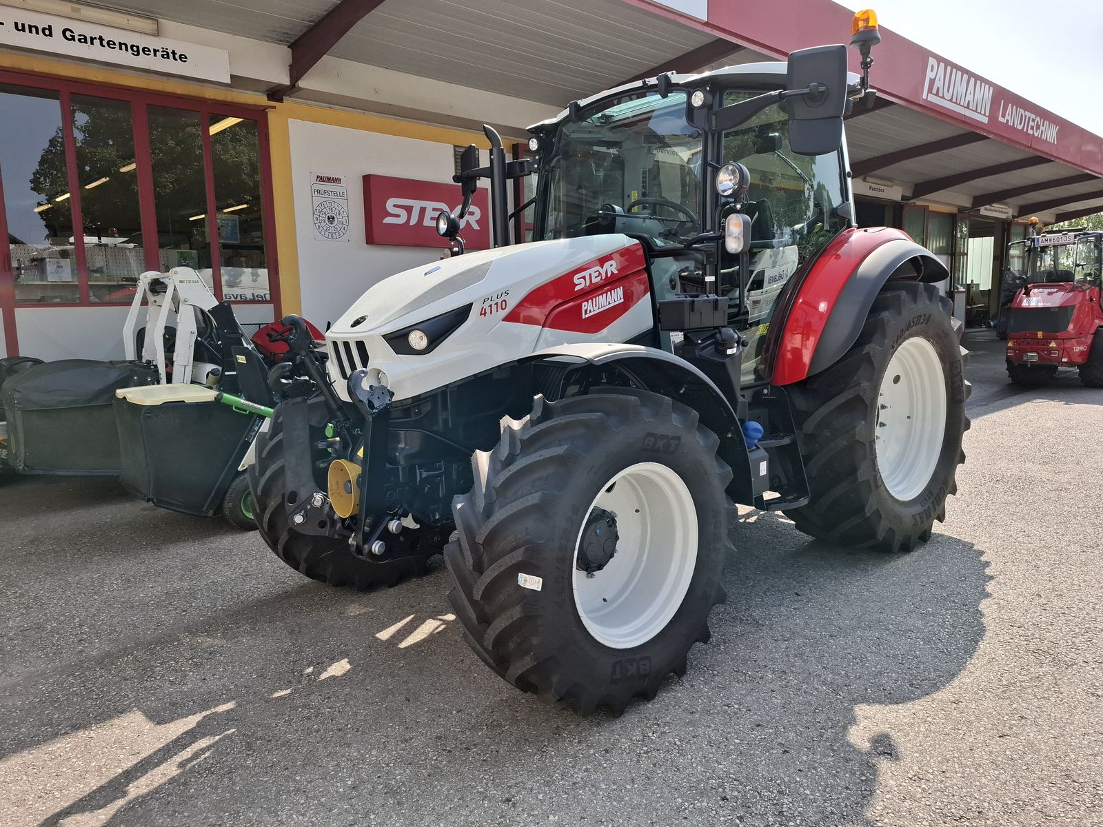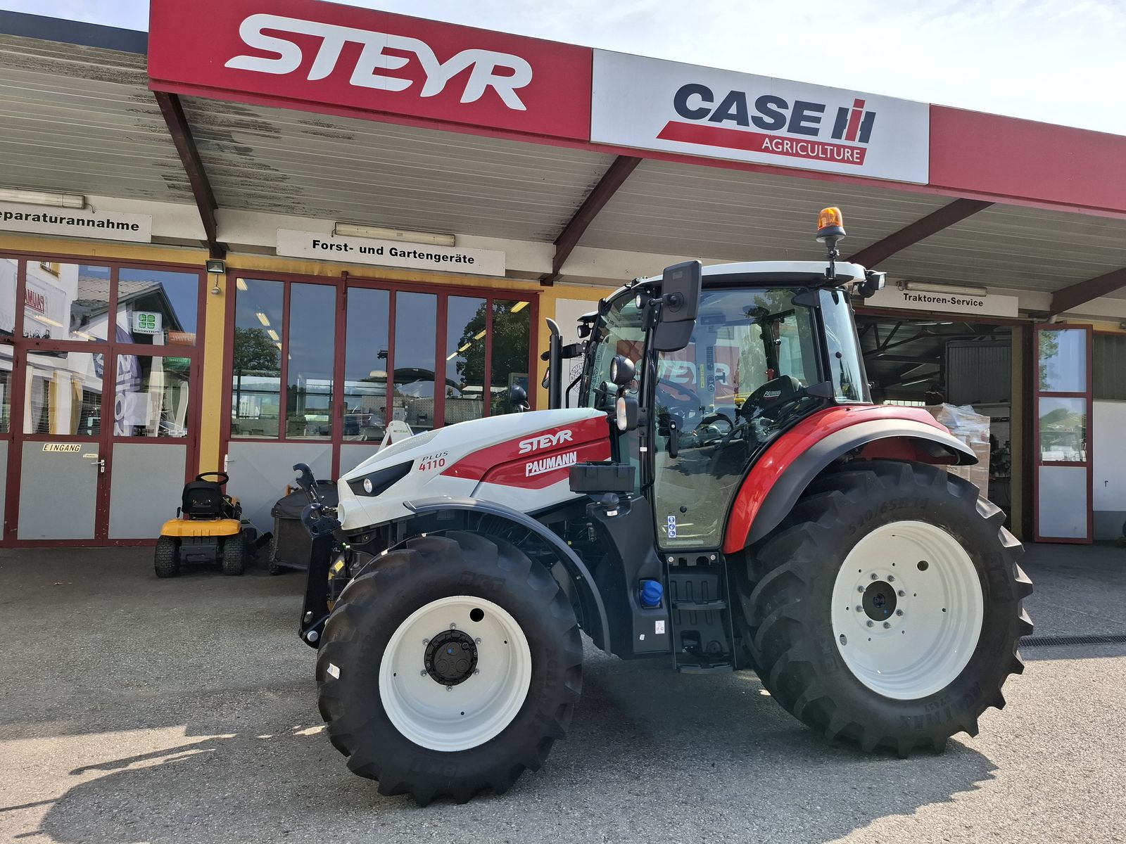 * Vorführtraktor - JETZT DEINE VORFÜHRUNG planen mit Fa. PAUMANN TOP Ausstattung * mechanisches Fronthubwerk und Frontzapfwelle * 1x DW am Fronthubwerk * 2 Zwischenachssteuergeräte mit mech. Kreuzschalthebel Advanced * Elektronische Hubwerksregelung 2 externe Zusatzhubzylinder max. Hubkraft: 4.700 kg * S-Control 2 24x24 Getriebe mit elektrohydraulischen Powershuttle * Vorbereitung für Kriechgang * 2-fach Lastschaltung * 40 km/h bei reduzierter Drehzahl * elektrischer Fahrkupplungsbetätigung * hydr. Zapfwellenkupplung S-Stop II - 3-fach einstellbar * Zapfwellengeschwindigkeiten 540/540E/1000 inkl. AUTO-Funktion inkl. einstellbares Anlaufverhalten * Luftfedersitz (Grammer) Stoffbezug, Armlehnen, Gurt und 15° drehbar * Scharmüller Anhängerkupplung automatisch 32 mm Bolzen höhenverstellbar mit Fernbedienung aus der Kabine * Komfortkabine mit mechanischer Kabinenfederung * Klimaanlage * Armaturenbrett mit digitaler Anzeige * Aufstellbare Frontscheibe und aufstellbare Seitenscheiben * Freisichtdachfenster inkl. Sonnenrollo * Beifahrersitz mit Gurt * Innenspiegel * Wisch/Waschanlage Vorne und Hinten * Zigarettenanzünder und Aschenbecher * Radio * pneumatische Anhängerbremse (2-Kreis) * Kraftstofftank mit Tankschutz 130 Liter Diesel 10 Liter AdBlue * Allradvorderachse 1.0 HD gebremst * mit hydraulischer Differenzialsperre * Grundrahmen zur Montage von Frontladerkonsolen * 82 l/min Hydraulikpumpe für Arbeitshydraulik inkl. 36 l/min Lenkungspumpe * FPT F5C 3,6 l Vierzylindermotor, EU Stufe 5 mit zwei Motordrehzahlspeicher * 8x Arbeitsscheinwerfer davon 2x in der Motorhaube davon 2x am Dach vorne davon 4x am Dach hinten zusätzlich obenliegende Fahrscheinwerfer * 2 Rundumleuchten links und rechts * Handbremse und mechanische Getriebeparksperre * Vorderräder 440/65R24 Fixfelgen * Hinterräder 540/65R34 Fixfelgen Bei Interesse und für weitere Fragen wenden Sie sich bitte an unser Paumann-Landtechnik Verkaufsteam - wir beraten Sie gerne.