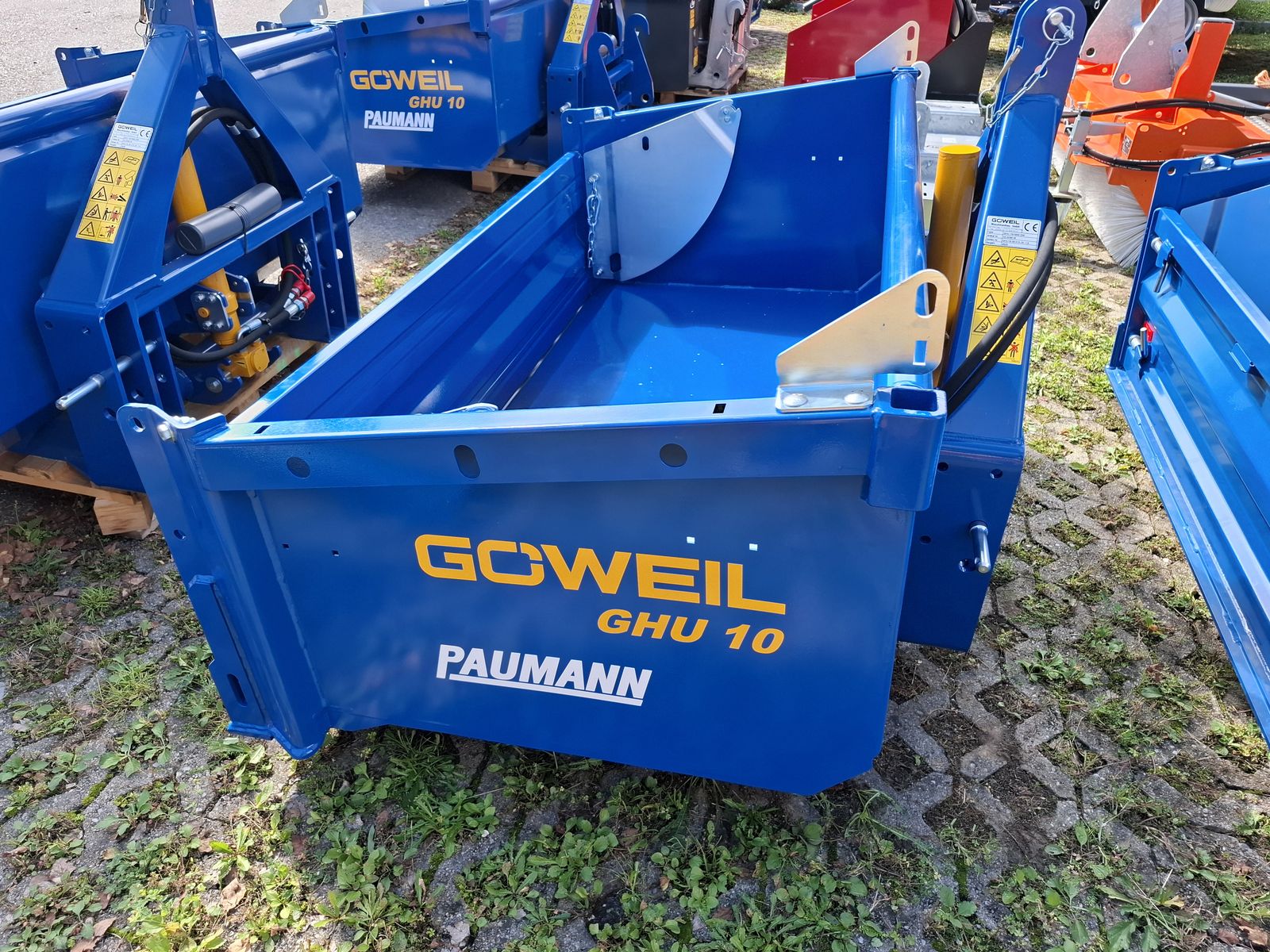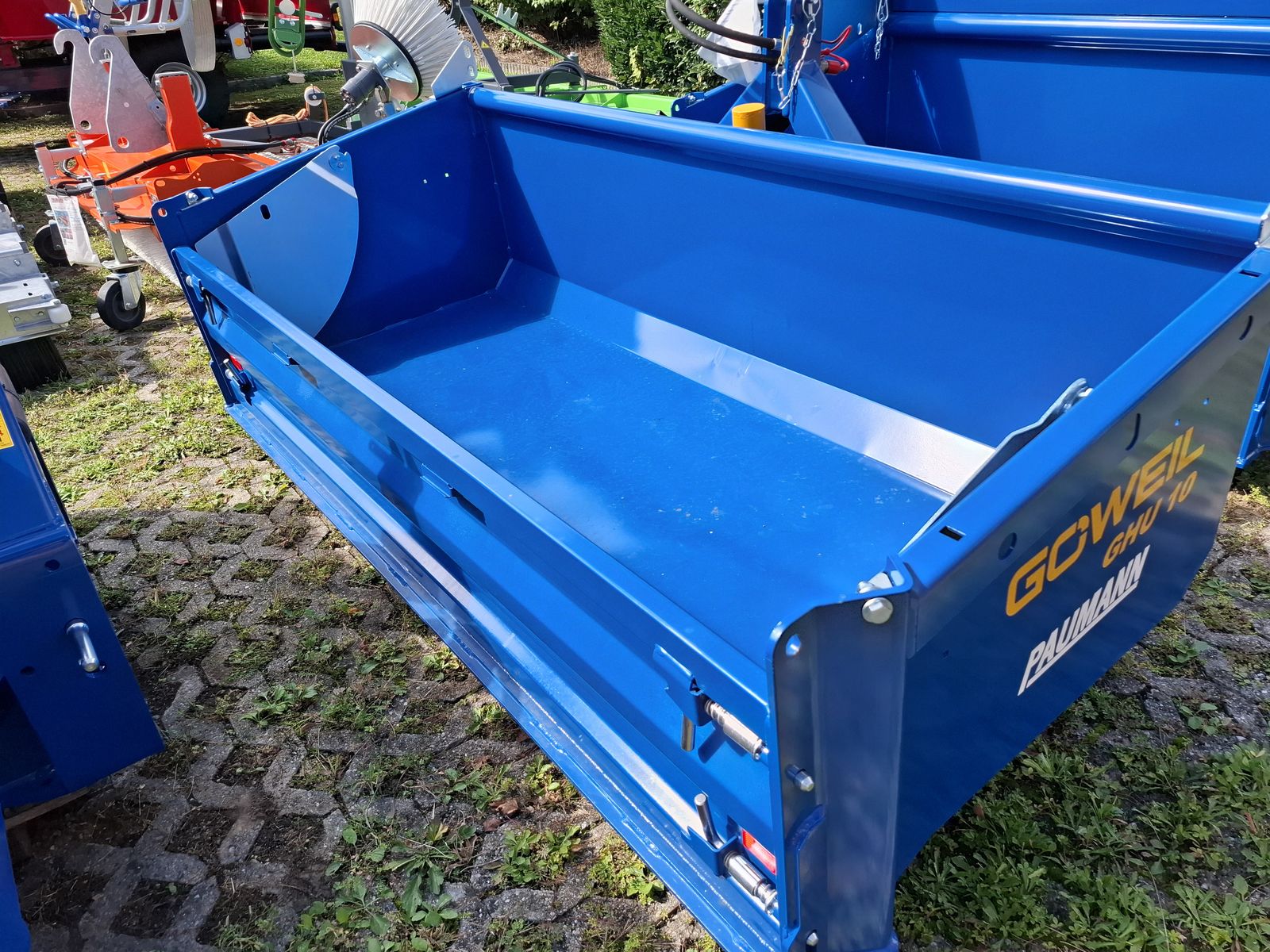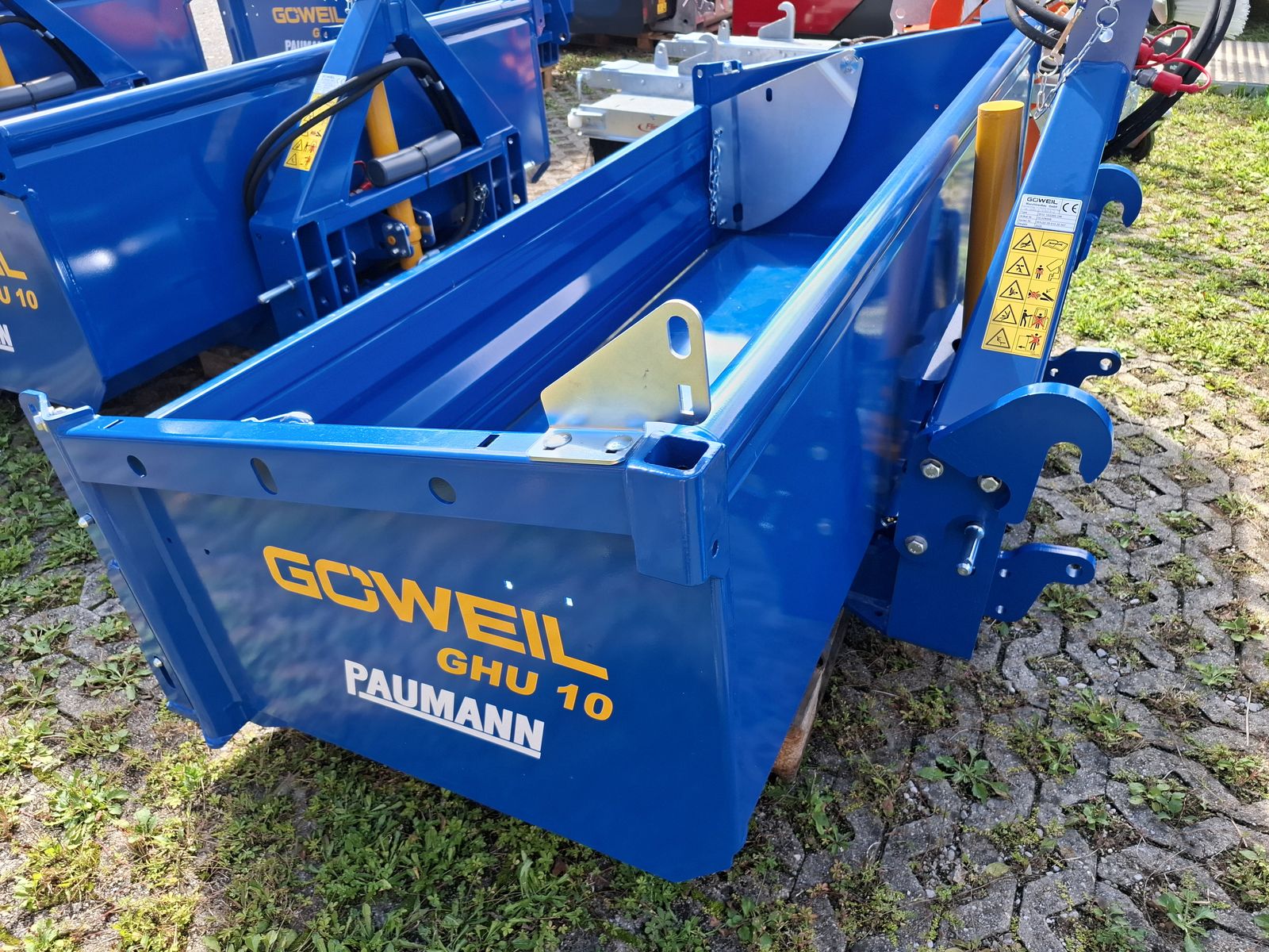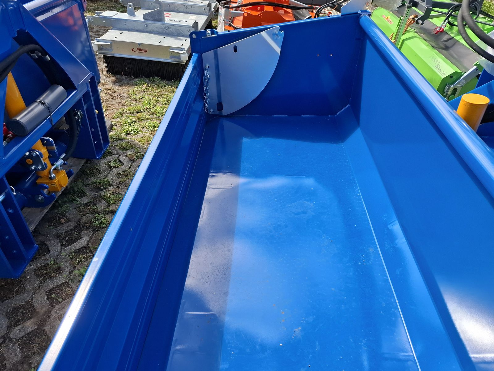 - Massive und Robuste Heckschaufel - Schaufel mit Dreipunktanbau Kat. I und Kat. II - Einfach oder doppelt wirkender 2-stufiger Teleskopzylinder stehend im Dreipunktrahmen - Torsionsfedern für schnelles Absenken in Endlage - inkl. automatischer Endlagenverriegelung bei einfachwirkender Ausführung - Flacher Schaufelboden mit aufgeschweißter Schürfleiste aus HARDOX 500 - Abnehmbare Pendelbordwand - Schaufeltiefe 1.000 mm - Stirn-/Seitenwandhöhe 600 mm - Leistungsbedarf 30 - 75 kW (~ 40 – 100 PS) - Nutzlast bis zu 3.500 kg OPTIONAL: + Schwenkvorrichtung (kann einfach und werkzeuglos angebracht oder abgenommen werden), erhöht die Stirnwand um 450 mm, kann weiterhin als Schaufelverlängerung verwendet werden + Euro-Aufnahme, Weidemann-Aufnahme, und viele weitere Lader-Aufnahmen einfach nachrüstbar (geschraubt) + Steckrungen + Aufsatzbordwände Viele Modelle lagernd! Bei Interesse und für weitere Fragen wenden Sie sich bitte an unser Paumann-Landtechnik Verkaufsteam - wir beraten Sie gerne.