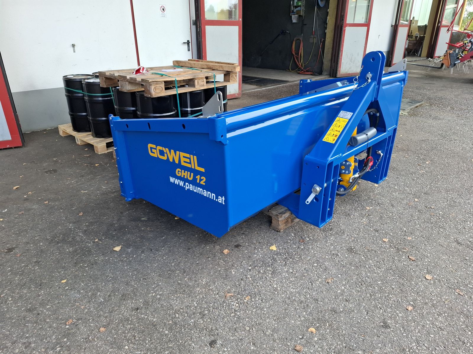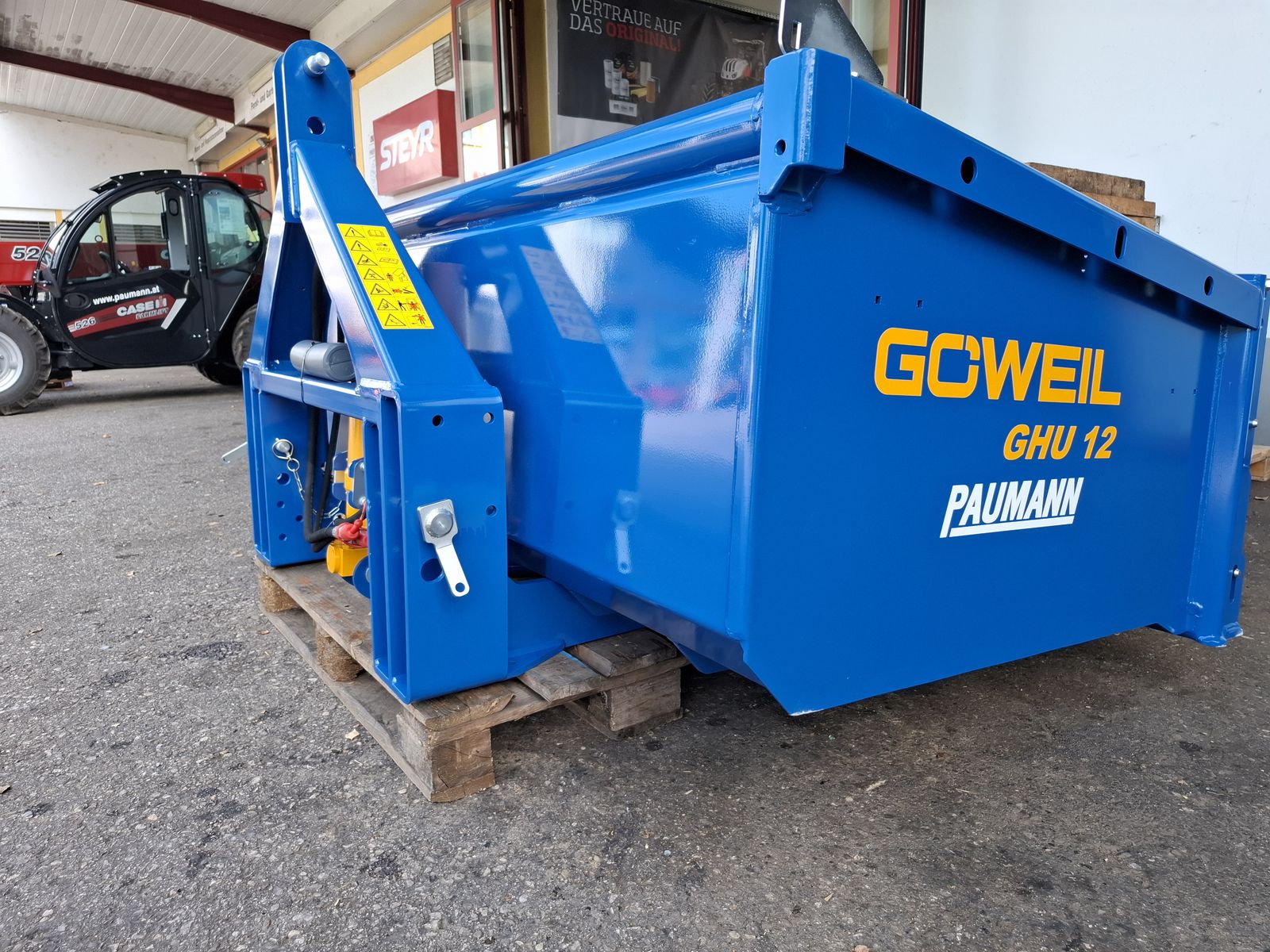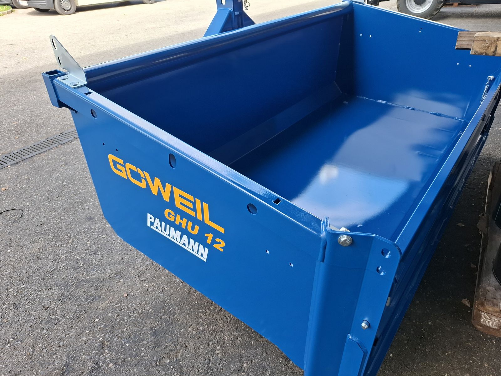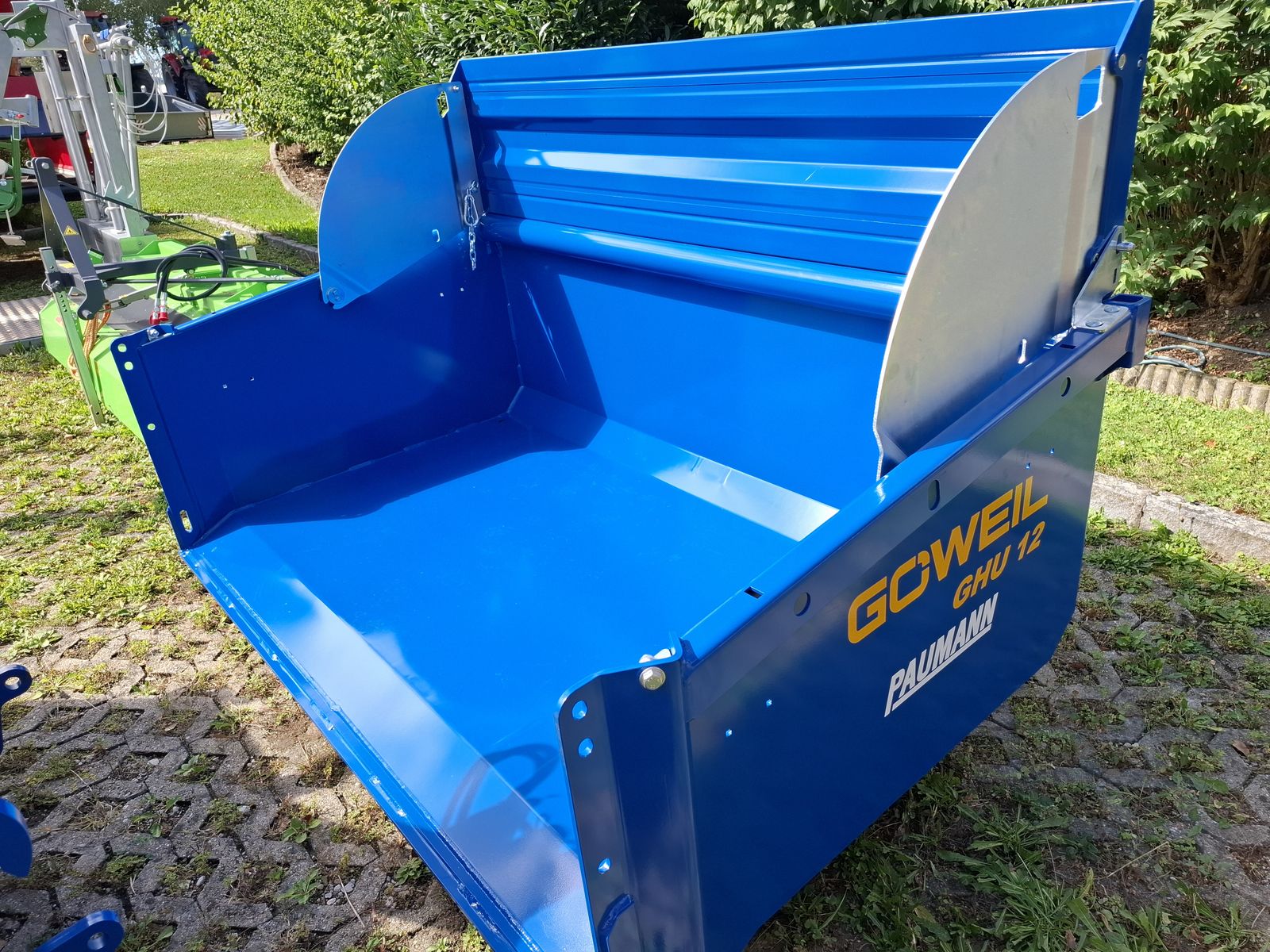 - Massive und Robuste Heckschaufel - Schaufel mit Dreipunktanbau Kat. II und Kat. III - Doppelt wirkender 3-stufiger Teleskopzylinder, stehend im Dreipunktrahmen - Flacher Schaufelboden mit aufgeschweißter Schürfleiste aus HARDOX 500 - Abnehmbare Pendelbordwand - Schaufeltiefe 1.200 mm - Stirn-/Seitenwandhöhe 700 mm - Leistungsbedarf ab 60 kW (~ 80 PS) - Nutzlast bis zu 5.000 kg OPTIONAL: + Schwenkvorrichtung (kann einfach und werkzeuglos angebracht oder abgenommen werden), erhöht die Stirnwand um 450 mm, kann weiterhin als Schaufelverlängerung verwendet werden + Euro-Aufnahme, Weidemann-Aufnahme, und viele weitere Lader-Aufnahmen einfach nachrüstbar (geschraubt) + Steckrungen + Aufsatzbordwände Viele Modelle lagernd! Bei Interesse und für weitere Fragen wenden Sie sich bitte an unser Paumann-Landtechnik Verkaufsteam - wir beraten Sie gerne.