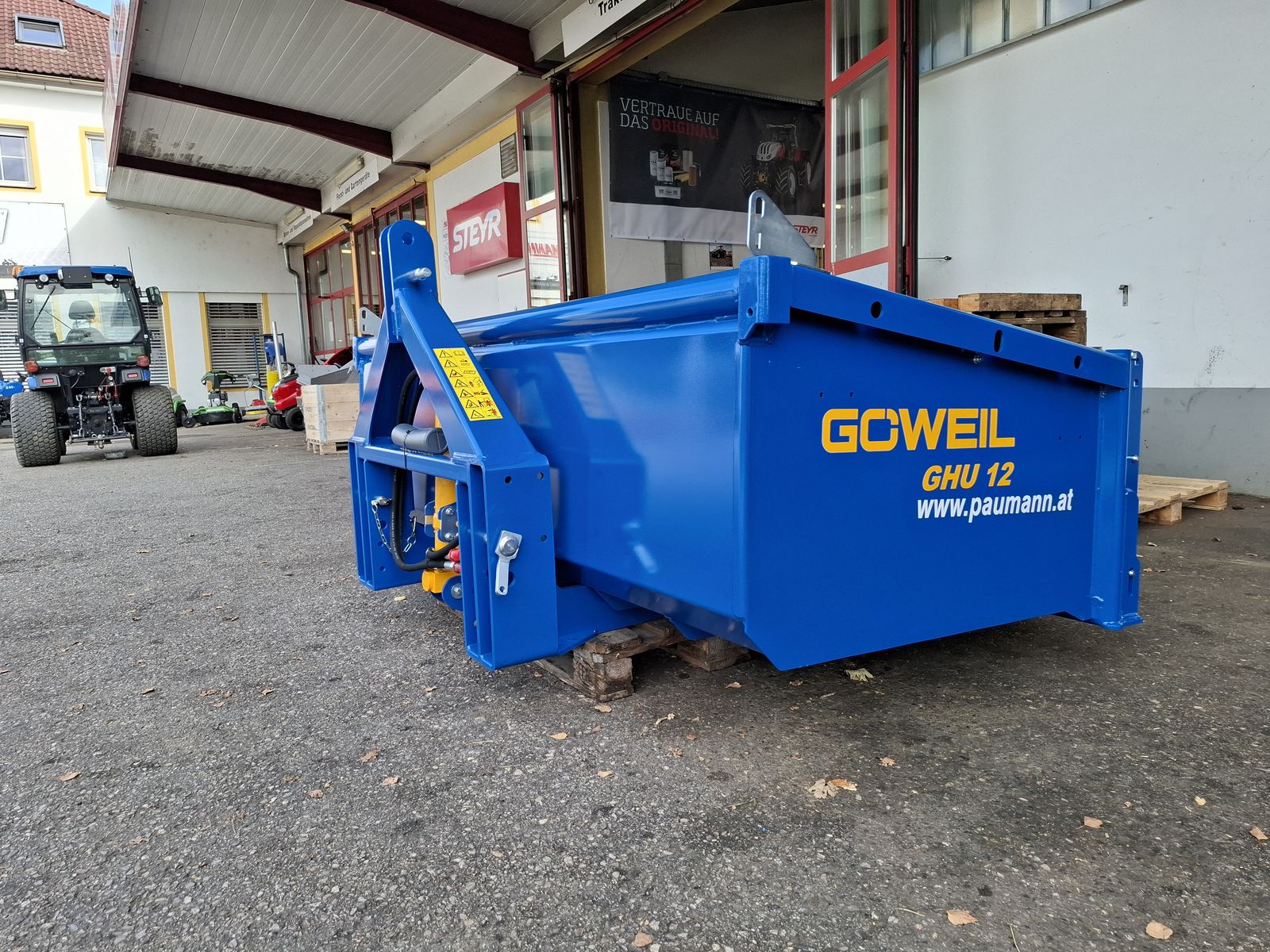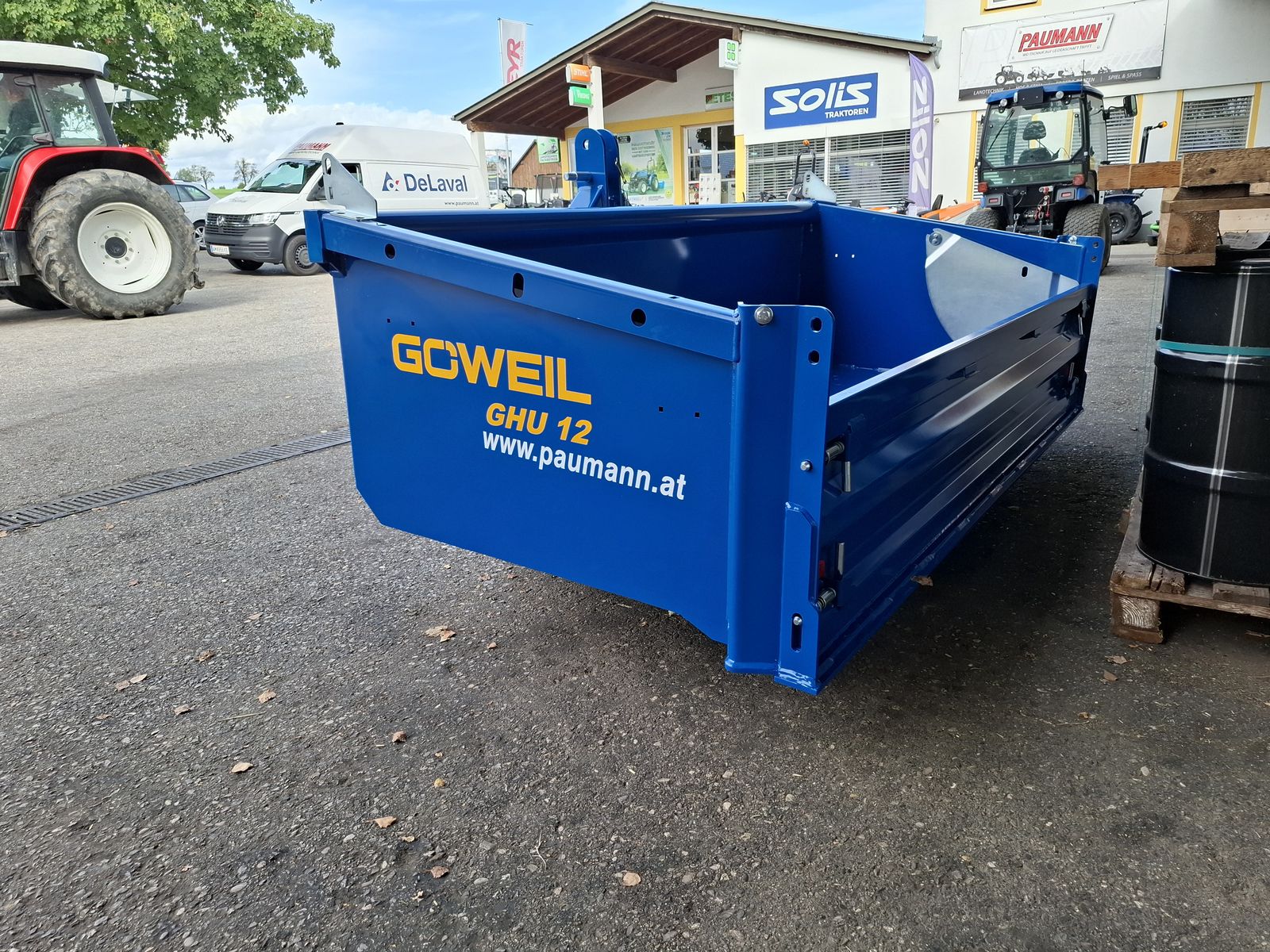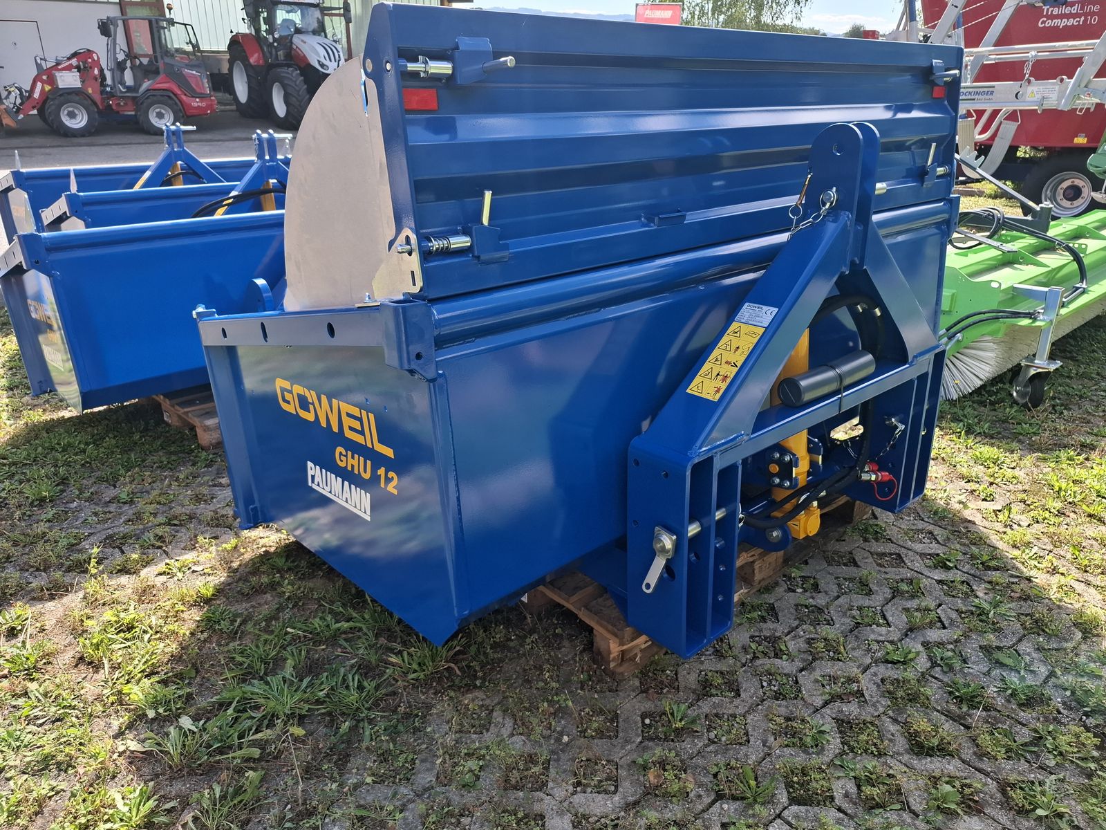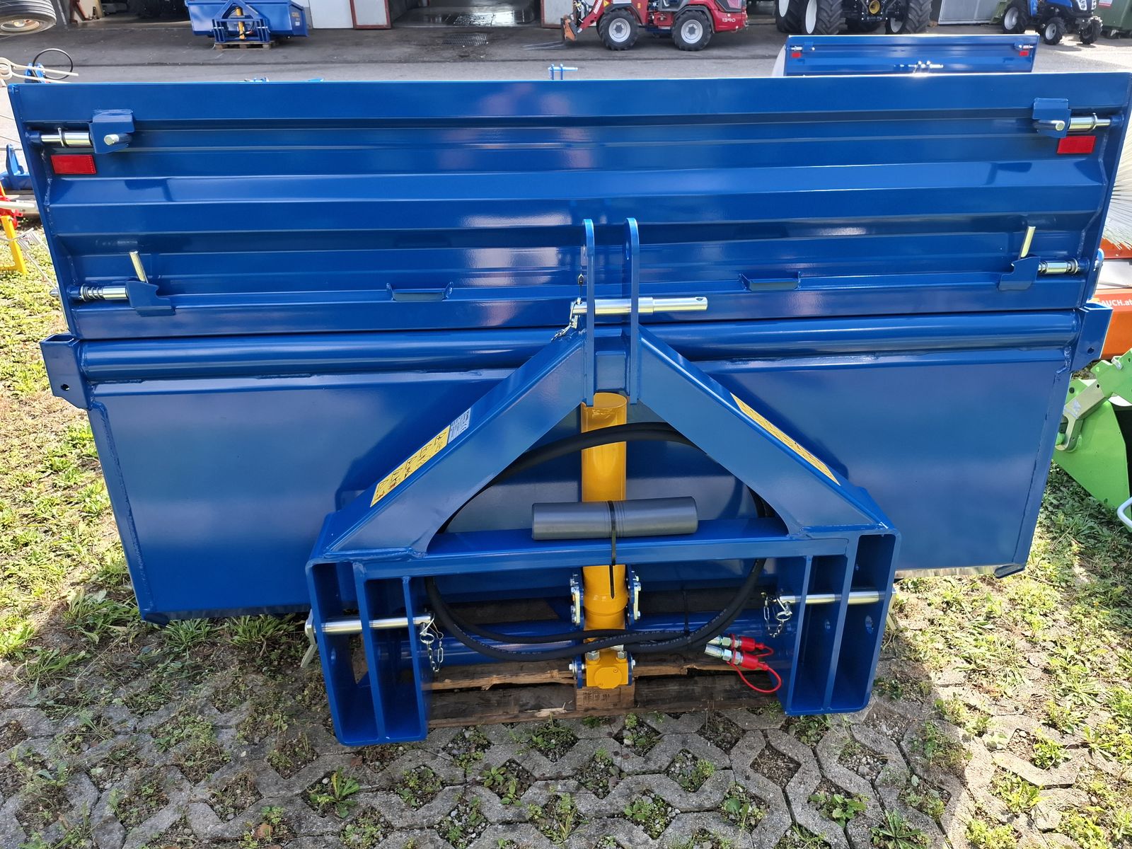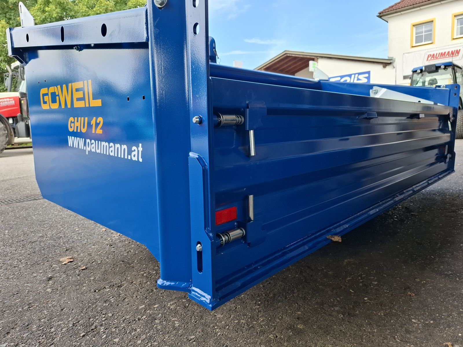 - Massive und Robuste Heckschaufel - Schaufel mit Dreipunktanbau Kat. II und Kat. III - Doppelt wirkender 3-stufiger Teleskopzylinder, stehend im Dreipunktrahmen - Flacher Schaufelboden mit aufgeschweißter Schürfleiste aus HARDOX 500 - Abnehmbare Pendelbordwand - Schaufeltiefe 1.200 mm - Stirn-/Seitenwandhöhe 700 mm - Leistungsbedarf ab 60 kW (~ 80 PS) - Nutzlast bis zu 5.000 kg OPTIONAL: + Schwenkvorrichtung (kann einfach und werkzeuglos angebracht oder abgenommen werden), erhöht die Stirnwand um 450 mm, kann weiterhin als Schaufelverlängerung verwendet werden + Euro-Aufnahme, Weidemann-Aufnahme, und viele weitere Lader-Aufnahmen einfach nachrüstbar (geschraubt) + Steckrungen + Aufsatzbordwände Viele Modelle lagernd! Bei Interesse und für weitere Fragen wenden Sie sich bitte an unser Paumann-Landtechnik Verkaufsteam - wir beraten Sie gerne.