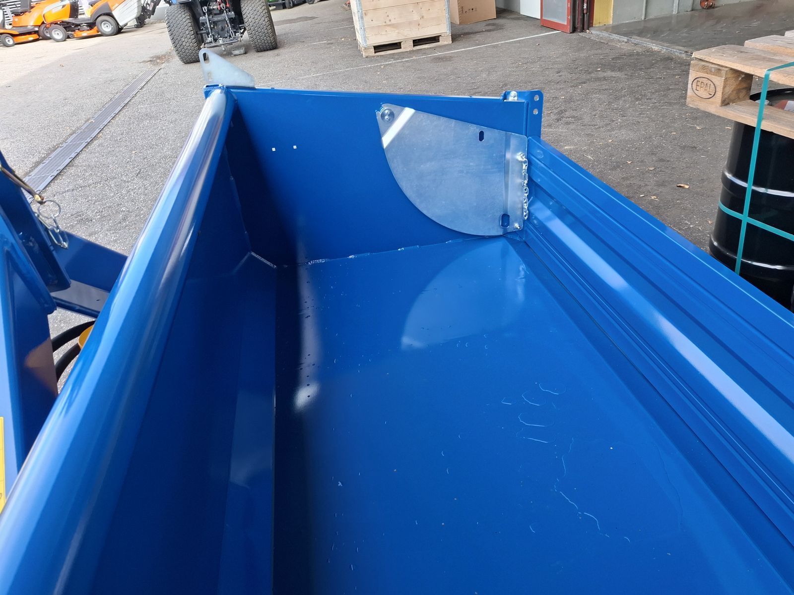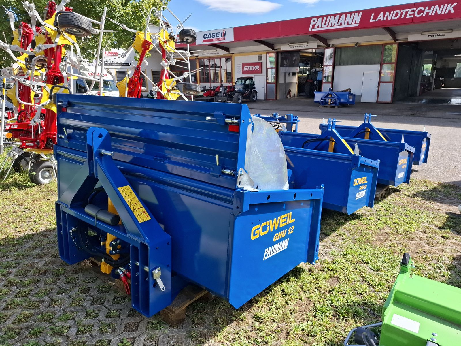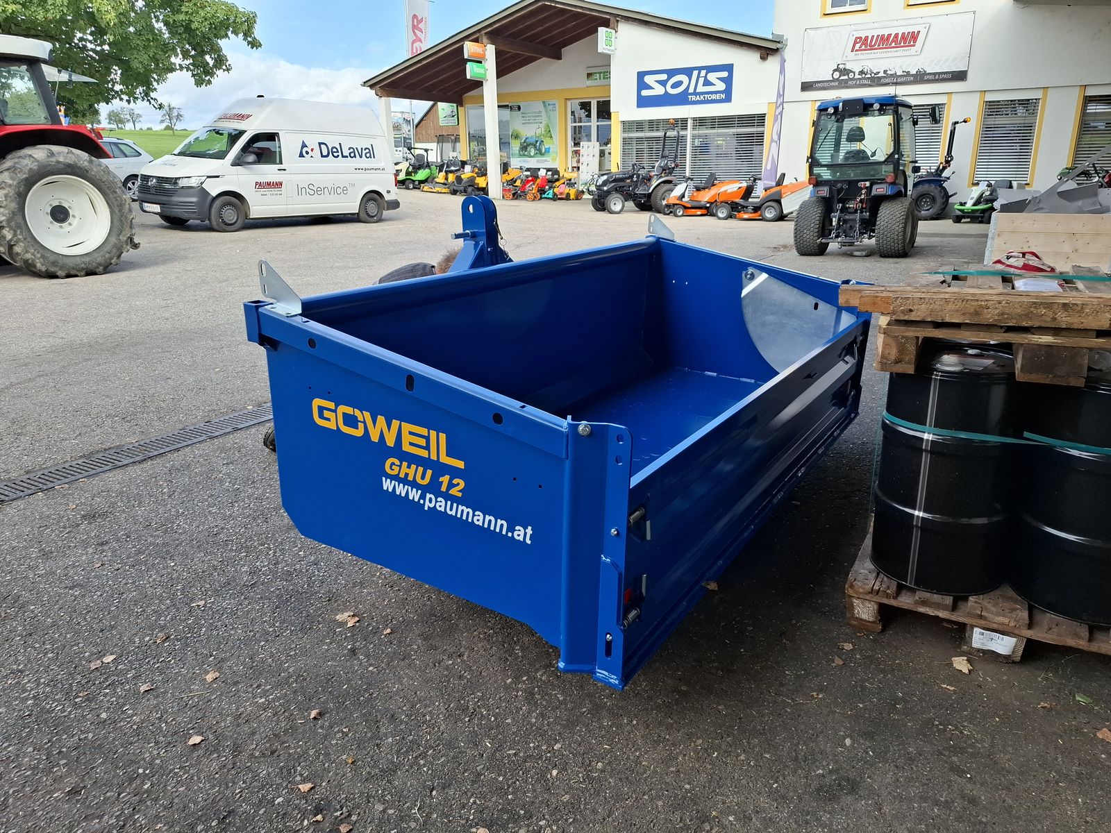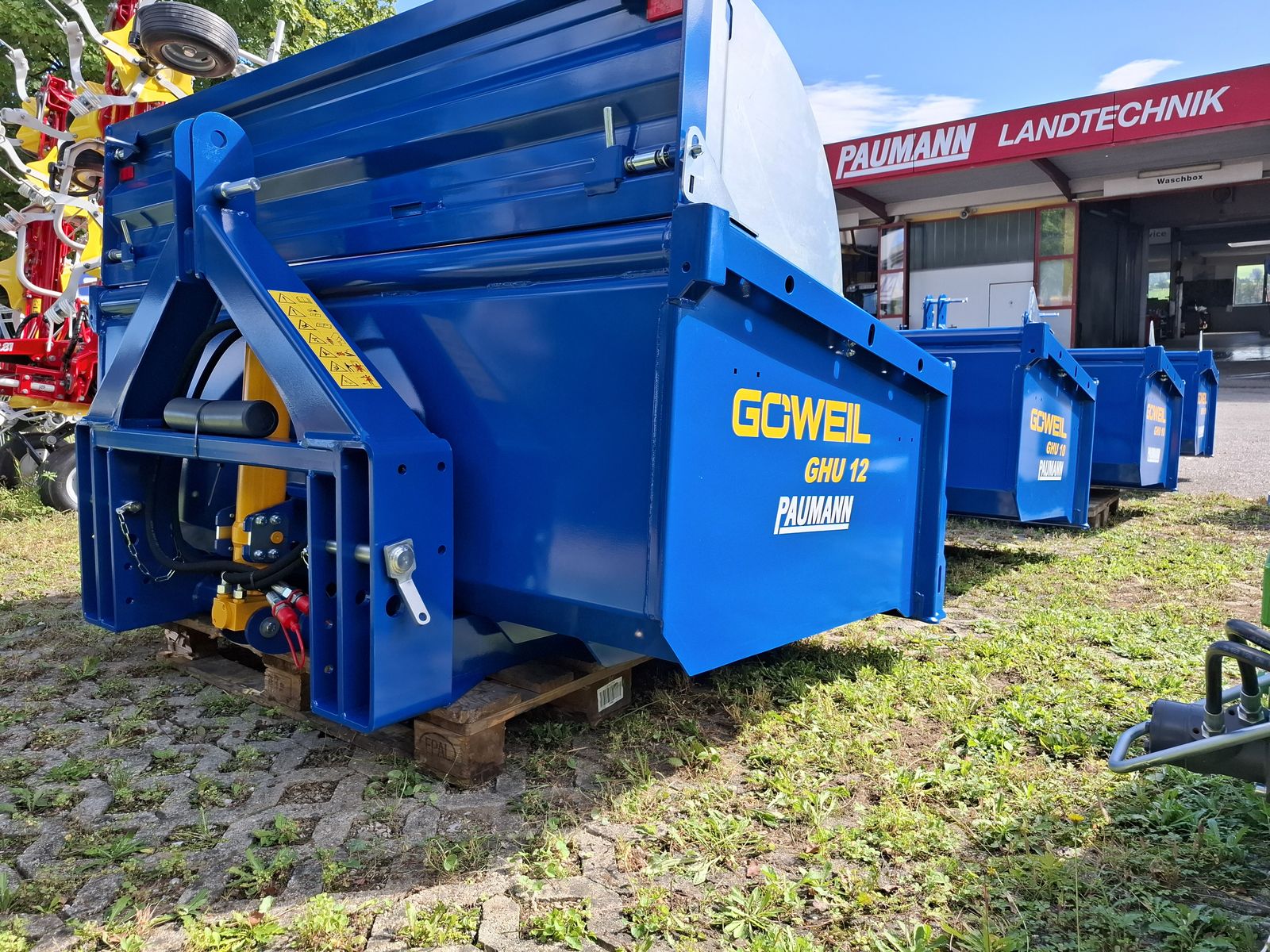 - Massive und Robuste Heckschaufel - Schaufel mit Dreipunktanbau Kat. II und Kat. III - Doppelt wirkender 3-stufiger Teleskopzylinder, stehend im Dreipunktrahmen - Flacher Schaufelboden mit aufgeschweißter Schürfleiste aus HARDOX 500 - Abnehmbare Pendelbordwand - Schaufeltiefe 1.200 mm - Stirn-/Seitenwandhöhe 700 mm - Leistungsbedarf ab 60 kW (~ 80 PS) - Nutzlast bis zu 5.000 kg OPTIONAL: + Schwenkvorrichtung (kann einfach und werkzeuglos angebracht oder abgenommen werden), erhöht die Stirnwand um 450 mm, kann weiterhin als Schaufelverlängerung verwendet werden + Euro-Aufnahme, Weidemann-Aufnahme, und viele weitere Lader-Aufnahmen einfach nachrüstbar (geschraubt) + Steckrungen + Aufsatzbordwände Viele Modelle lagernd! Bei Interesse und für weitere Fragen wenden Sie sich bitte an unser Paumann-Landtechnik Verkaufsteam - wir beraten Sie gerne.