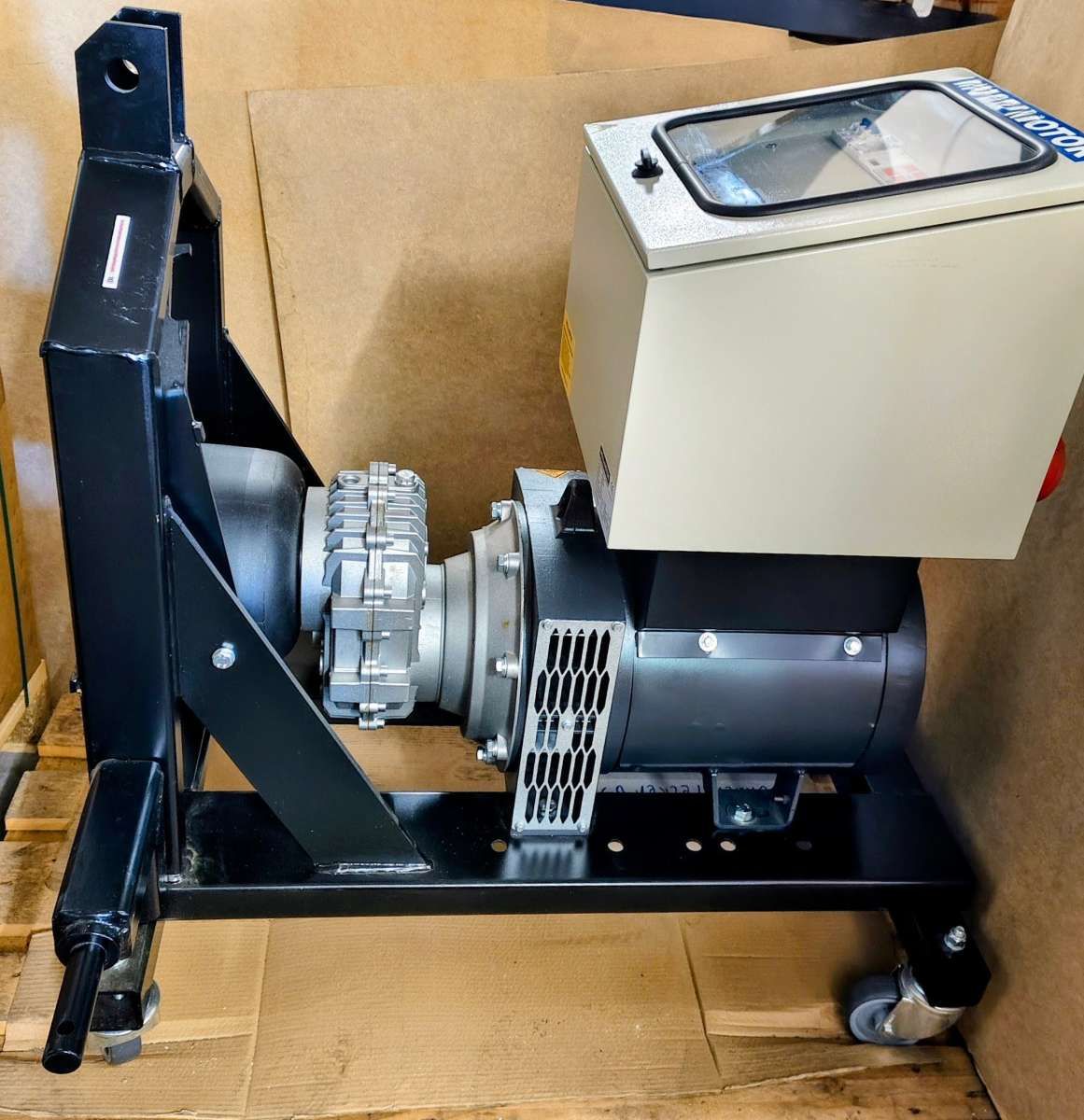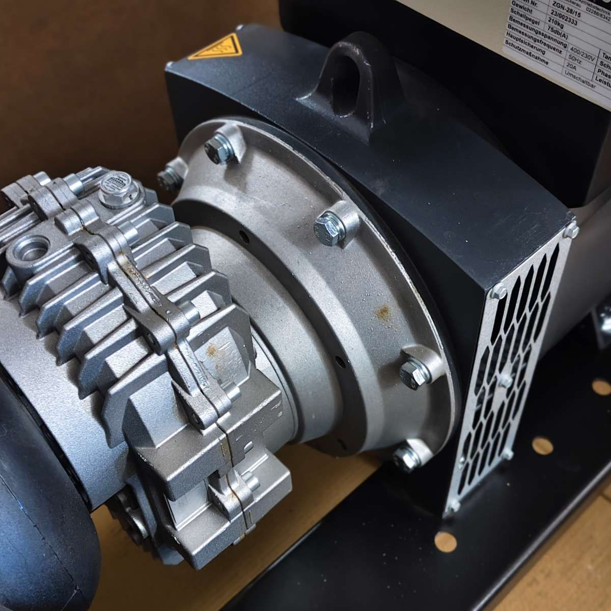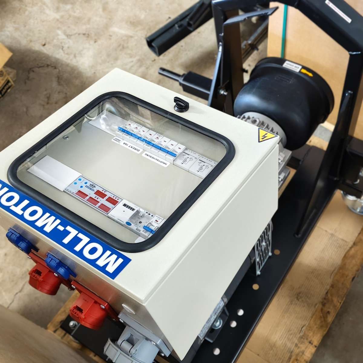 Der Stromgenerator der Marke Moll, Modell ZGN 28/15, präsentiert sich als eine hochmoderne Lösung für den Einsatz sowohl im Feld- als auch im Hausbetrieb. Diese neue Generation von Stromgeneratoren, hergestellt in Österreich, kombiniert leistungsstarke Technologie mit robuster Bauweise. Mit einer Leistung von 16 PS und einer beeindruckenden Wirkleistung von 12 kW erfüllt dieses Modell die Anforderungen verschiedenster Anwendungen. Der Generator bietet eine Scheinleistung von 15 kVA und ist für eine empfohlene Traktorleistung von 35 PS ausgelegt. Dank seines Eigengewichts von 210 kg und der Dreipunktaufhängung lässt er sich mühelos an landwirtschaftlichen Fahrzeugen anbringen und transportieren. Für den Feldbetrieb stehen zwei Schuko-Steckdosen mit 16A, eine CEE 5-polige 16A-Steckdose und eine CEE 5-polige 32A-Steckdose zur Verfügung. Der Hausbetrieb wird durch eine leistungsstarke 5-polige 63A-Steckdose (inklusive 63A Stecker) unterstützt. Der Industrie-Synchrongenerator ist ein Langsamläufer mit 1500 U/Min und arbeitet bürstenlos, was zur Langlebigkeit und Wartungsfreundlichkeit beiträgt. Der AVR3 Spannungsregler mit 3-phasiger Ist-Werterfassung sorgt für eine stabile Spannungsregelung. Sicherheitsfeatures umfassen Schutzabschaltungen bei Über- und Unterfrequenz, Über- und Unterspannung, Linksdrehfeld, Kurzschluss und Überlast, was einen sicheren und reibungslosen Betrieb gewährleistet. Der Generator ist sofort verfügbar und wird inklusive eines Radsatzes geliefert, was seine Mobilität und Flexibilität erhöht. Der optimal geregelte Zapfwellengenerator von Moll ist die ideale Lösung für alle, die eine zuverlässige und leistungsstarke Stromquelle benötigen. * 15 kVA * Eigengewicht 210 kg * Wirkleistung 12 kW * Empfohlene Traktorleistung 35 PS * Feldbetrieb und Hausbetrieb * Steckdosen Feldbetrieb: 2x Schuko 16A, 1x CEE 5pol. 16A, 1x CEE 5pol. 32A * Steckdose Hausbetrieb: 1x 5pol. 63A (63A Stecker inkludiert) * Dreipunktaufhängung * Industrie Synchrongenerator - Langsamläufer 1500 U/Min - Bürstenlos * AVR3 Spannungsregler mit 3-Phasiger Ist-Werterfassung * Schutzabschaltung bei: - Über-/Unterfrequenz - Über-/Unterspannung - Linksdrehfeld - Kurzschluss - Überlast * Inkl. Radsatz * Sofort Verfügbar OPTIMAL Geregelter Zapfwellengenerator