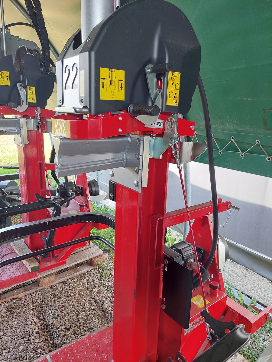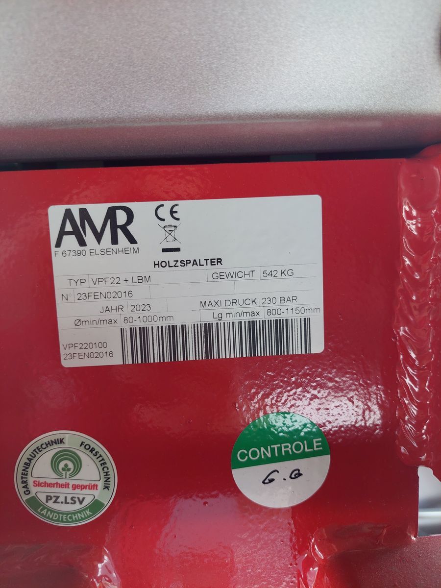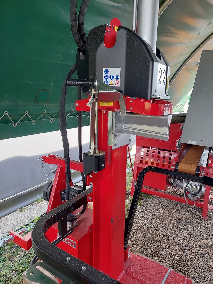 Lagermaschine - sofort verfügbar! Serienmäßige Ausstattung: • Einfache und leichtgängige 2-Hand-Sicherheitsschaltung • Verstellbare Handgriffe • 2 Spaltgeschwindigkeiten • Kolbenschnellrücklauf • Zylinderhub 1.050 mm, werkzeuglos absenkbar • Mechanischer Stammheber • Vollstahl-Bodenplatte mit schrägen Kanten • Ergonomisch geformter Spaltkeil • Messingführung • Dreipunktanbau Kat. I und II • Doppelpumpe bei allen Modellen mit E-Motor • Gusspumpe, robust und leiste (bei Zapfwellenantrieb) • Halterung für Handsappie • Bedienungsanleitung VPF 22 Antrieb: Zapfwellenantrieb Spaltkraft: 22t Öffnungsweite: 1.150mm Stempelvorlauf (cm/s): Stufe 1: 11,4 Stufe 2: 23,3 Stempelrücklauf: 17,1cm/s Pumpenleistung: 69l/min Zylinderdurchmesser: 110 x 70 mm Füllmenge Hydrauliköl: 62l Spaltmesserlänge: 285mm Eigengewicht: 545kg ohne Zapfwelle