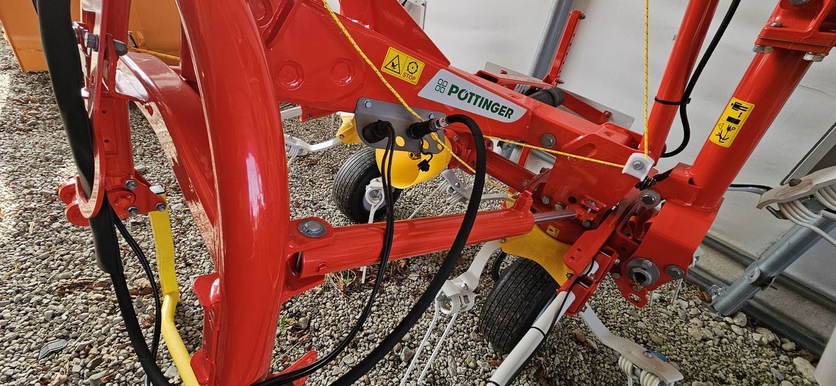 Top Deal Aktion!! * Gelenkwelle 1 3/8" 6-teilig * Dreipunkt Anbau Kat II * Standardzinke 9,5 mm * Antrieb 540 U/min * Warntafeln mit Beleuchtung * Ausrüstung PÖTTINGER * hydraulische Vorgewendesteuerung LIFTMATIC * hydraulisch verstellbare Grenzstreueinrichtung * zentrale Grenzstreueinrichtung * Tastrad 16x6,5-8 mit Heckanbausatz Ob in Silage oder Heu, in ebenem oder hügeligem Gelände – HIT Zettkreisel von PÖTTINGER machen überall eine perfekte Figur. Die innovative DYNATECH Kreiseltechnik sorgt für das sauberste Streubild und maximale Futterschonung. Die Bodenanpassung funktioniert in gewohnter PÖTTINGER-Manier – ideale Voraussetzungen für die Ernte von Qualitätsfutter. TECHNISCHE DATEN: - Arbeitsbreite: 6 m - Kreiseldurchmesser: 1,3 m - Transportbreite: 2,55 m - Transporthöhe: 3,5 m - Gewicht: 785 kg - Leistungsbedarf: 40 PS