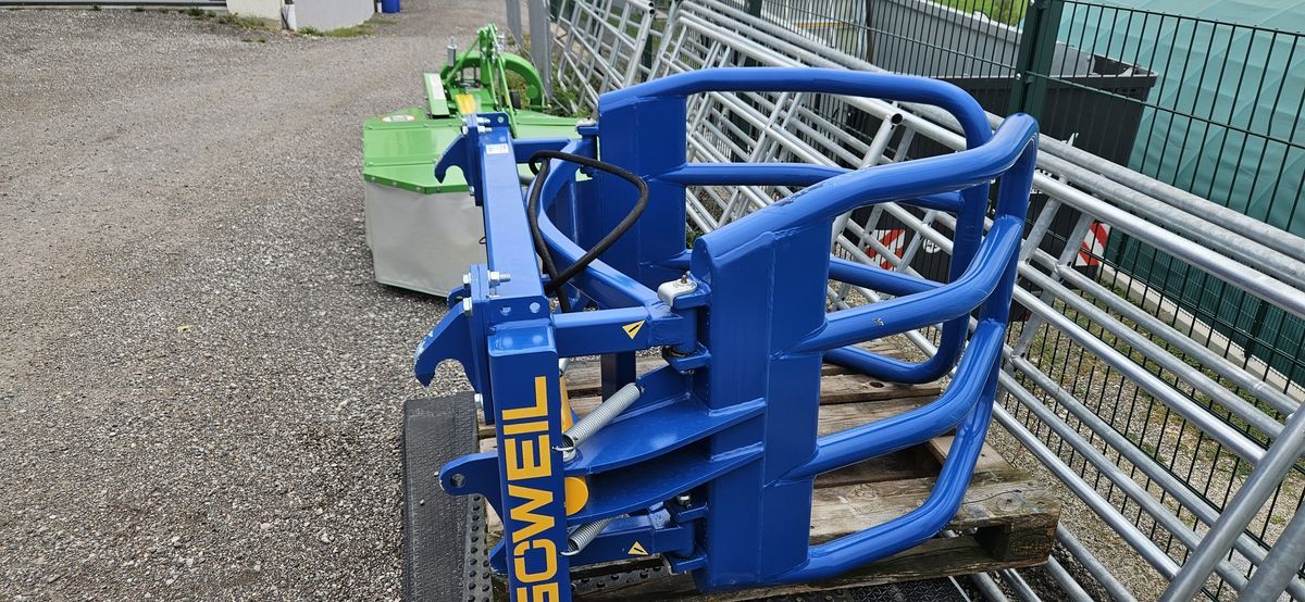 Der RBG ermöglicht ein einfaches Verladen und Stapeln von Rundballen jeder Art (Silage, Heu, Stroh) mit einem Durchmesser von 1,10 bis 1,60 m. Die gerundete Bauform gewährleistet einen besonders schonenden und sicheren Griff. Durch den gleichmäßigen Druck auf den Ballen entsteht weder eine Überdehnung noch eine Beschädigung der Folie. Ein wesentliches Merkmal ist auch hier die schlanke und kurze Bauweise, wodurch der Schwerpunkt sehr nahe am Lader liegt. * mit Euroaufnahme * groß dimensionierte, gerundete Greifarme mit Schwenkausgleich * Länge: 1.260 mm * Breite: 1.360 mm * Höhe: 800 mm * Gewicht: 202 kg * Max. Betriebsdruck: 200 bar * Ballengewicht: max. 1.800 kg