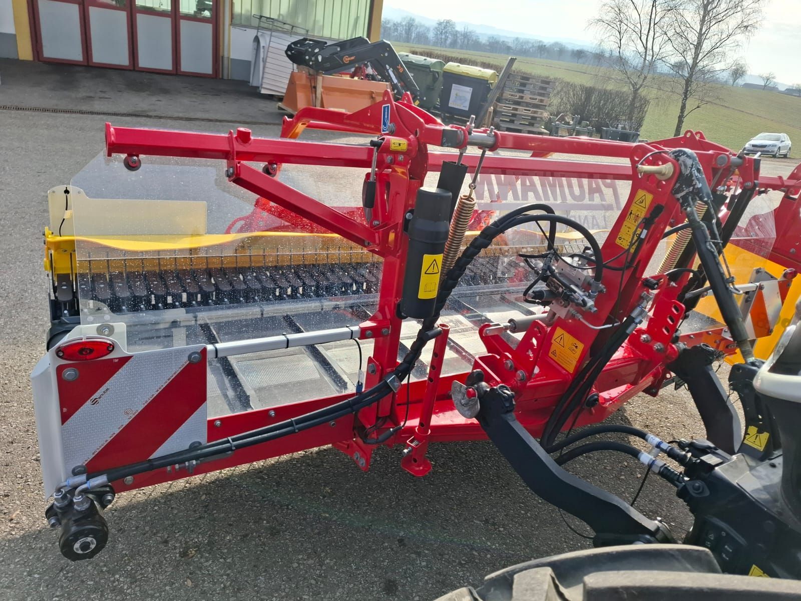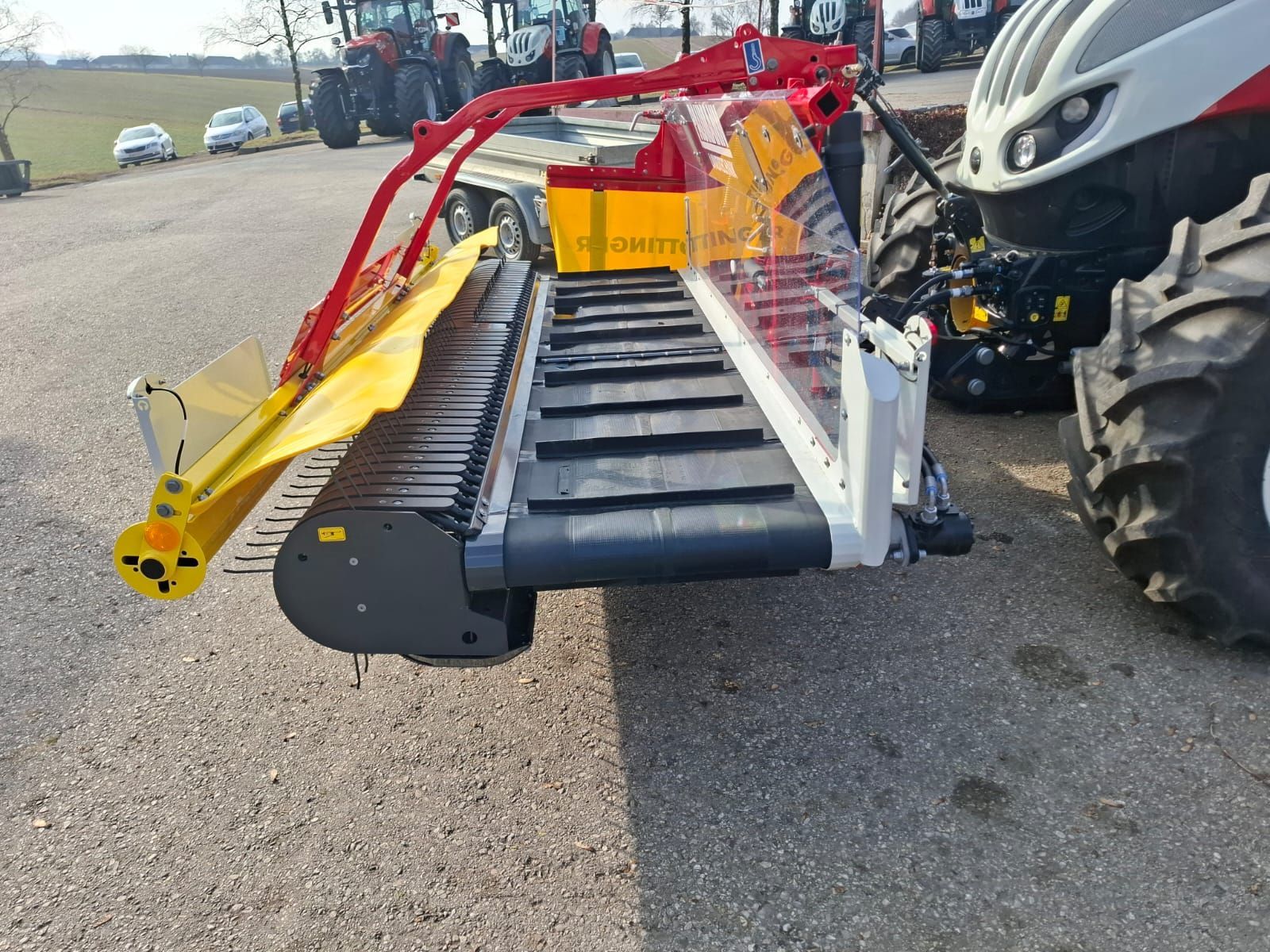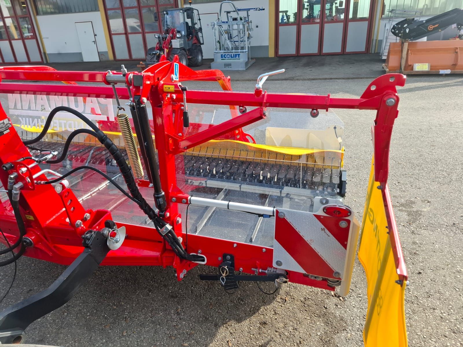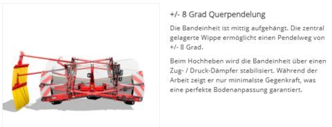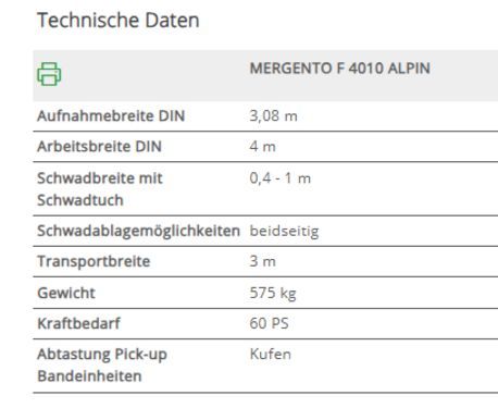 Ausstattung: - Anhängung Kat 1, Kat 2 - Vorwahlschaltung mit BASIC CONTROL Terminal - elektrische Banddrehzahleinstellung - Federentlastung ZUS - Beleuchtung ZUS - Saugnapfhalterung für CONTROL Terminal - Schwadtuch ZUS - 575 Kg - Arbeitsbreite 3,08m Der MERGENTO F 4010 ALPIN ist das Leichtgewicht unter den alpinen Frontbandschwadern. Mit nur 575 kg Eigengewicht bei einer Aufnahmebreite von 3,08 m sind Sie sicher im Steilhang unterwegs – auch mit leichten Traktoren und kleinen Zweiachsmähern. Lagermaschine