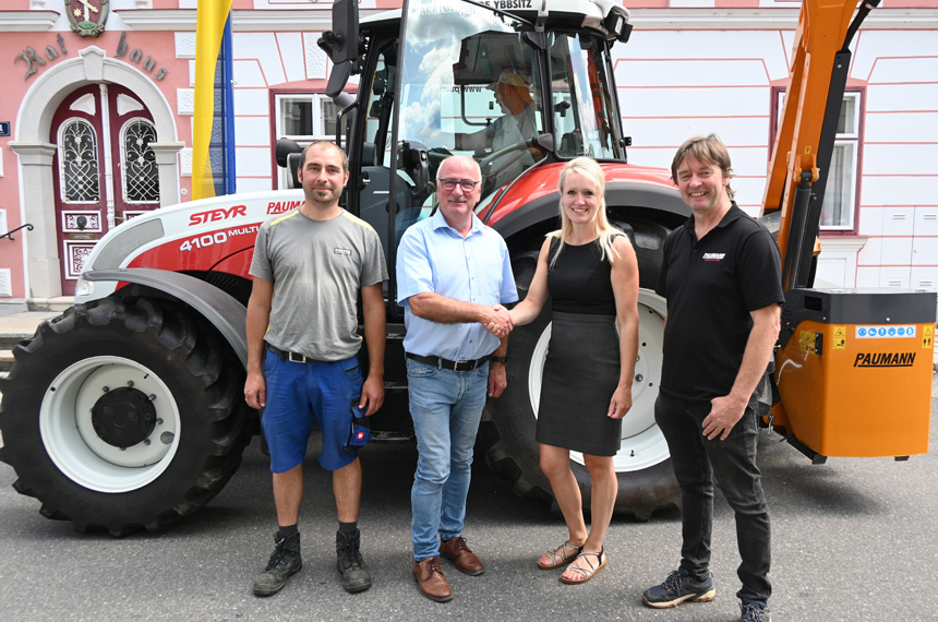 Ybbsitz, Juli 2025 – Die Gemeinde Ybbsitz verstärkt ihren Fuhrpark mit einem neuen Steyr Traktor Multi 4100 samt Hydrac Böschungsmäher, der bereits erfolgreich im täglichen Einsatz beim Bauhof steht. Die offizielle und feierliche Übergabe des Fahrzeugs fand kürzlich in Ybbsitz statt.